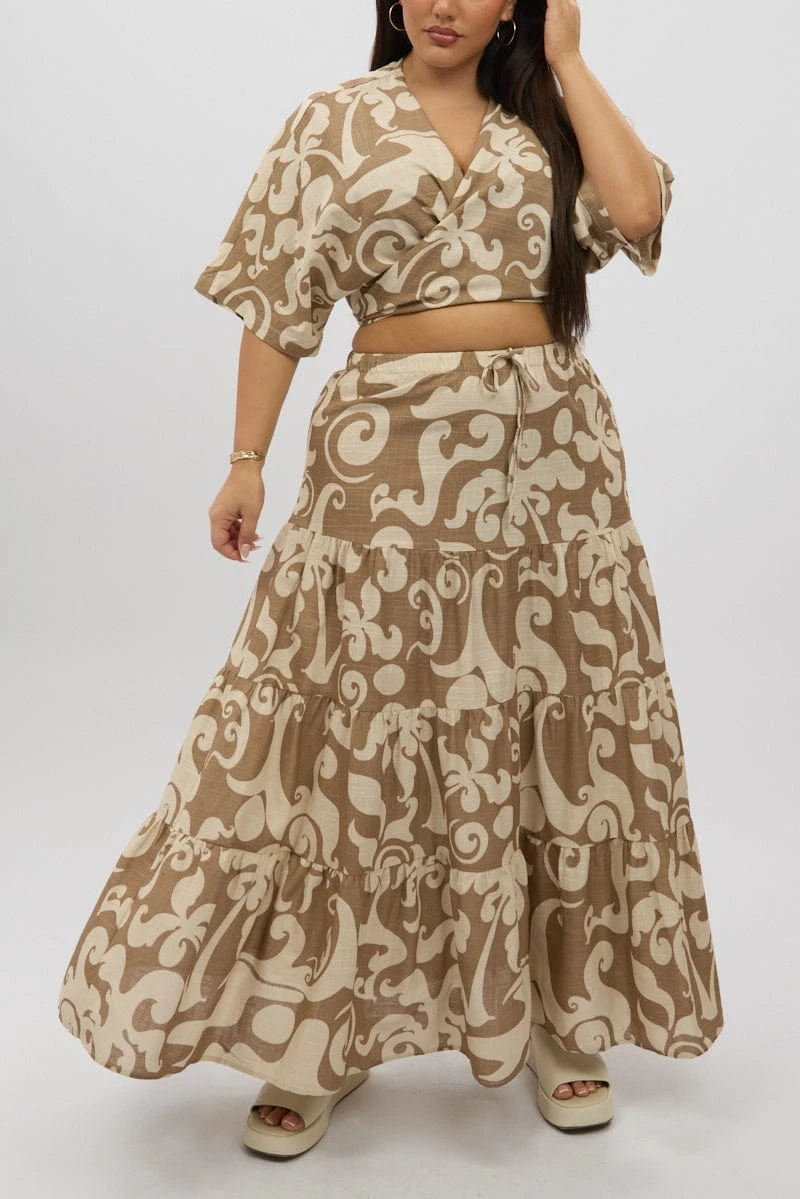 Be the first to review “Beige Abstract Linen Blend Tiered Maxiskirt” Cancel reply