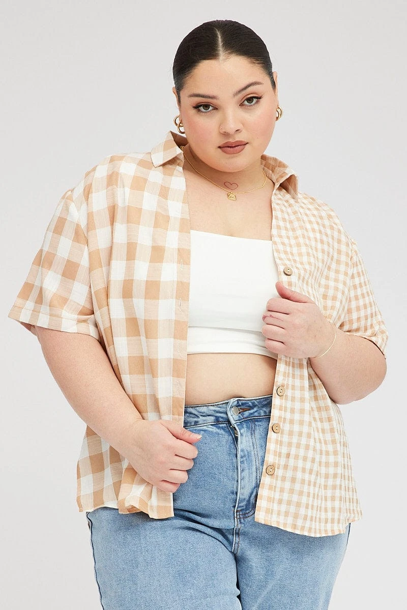 Be the first to review “Beige Check Relaxed Shirt Short Sleeve V-neck” Cancel reply