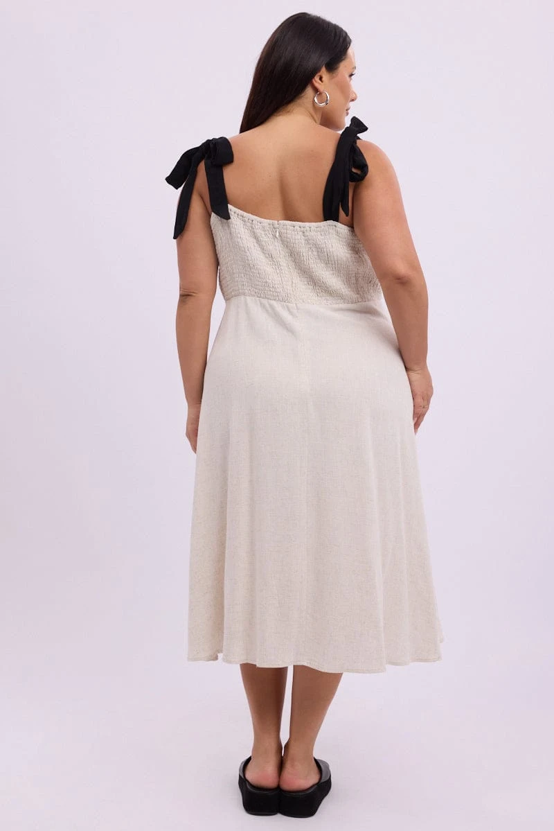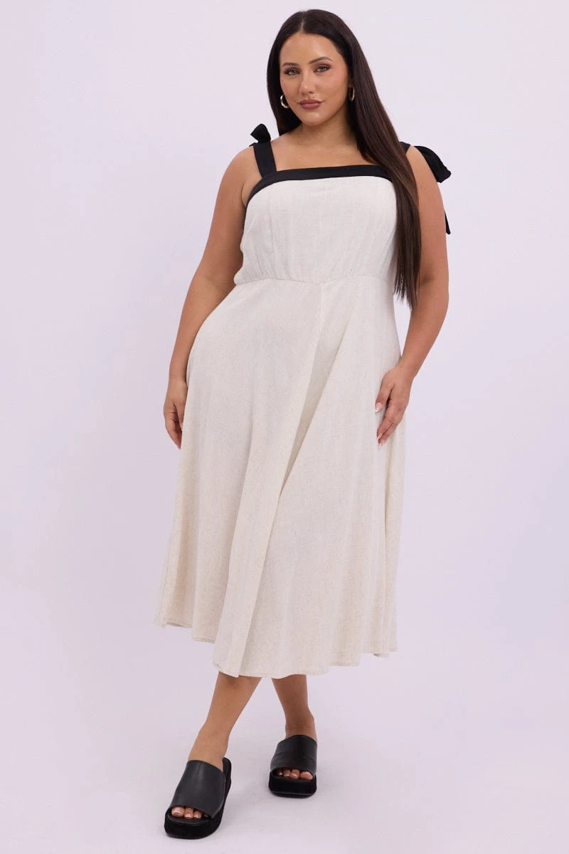 Be the first to review “Beige Midi Dress Sleeveless Contrast Shoulder Tie” Cancel reply
