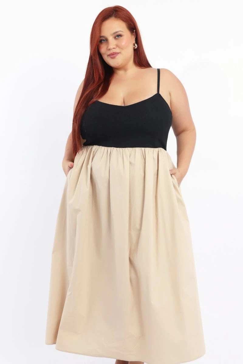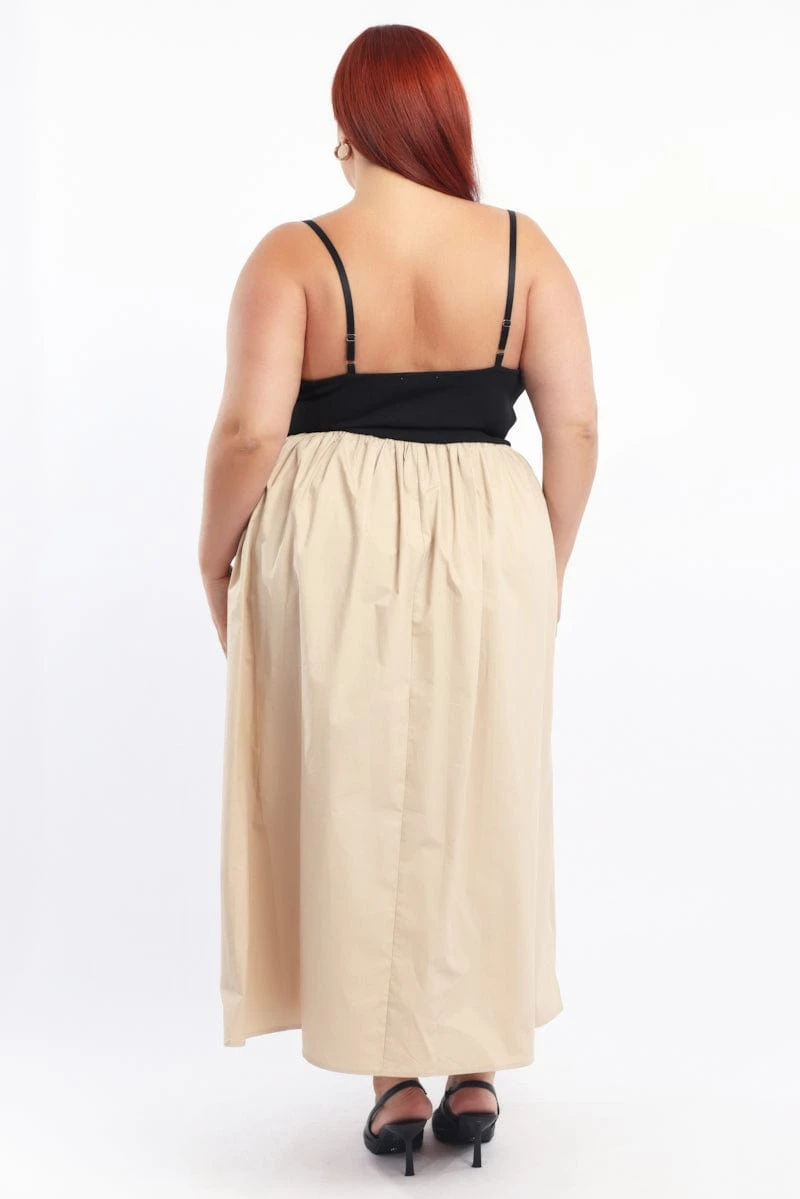 Be the first to review “Beige Midi Dress Sleeveless Poplin Skirt” Cancel reply