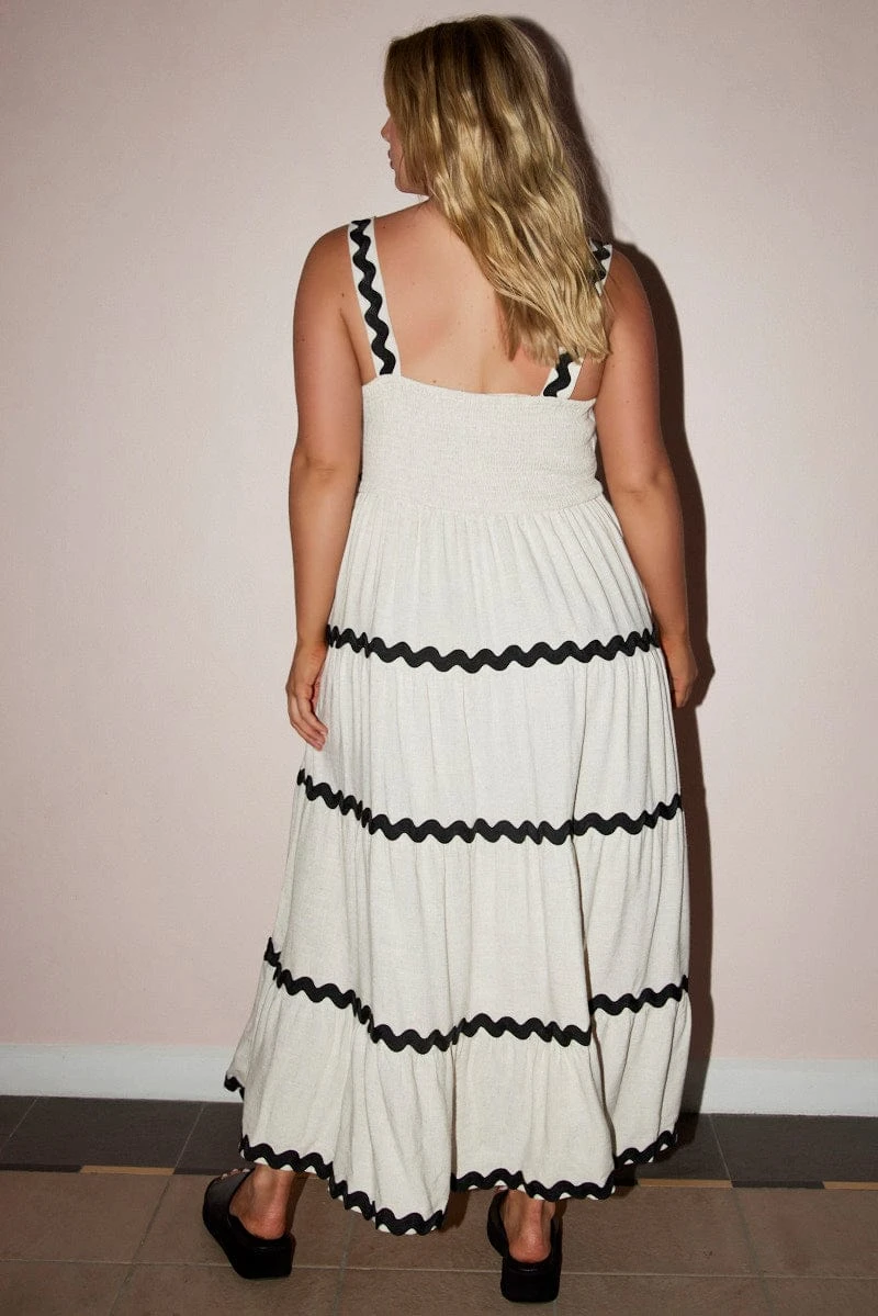 Be the first to review “Beige Midi Dress Sleeveless Ric Rac Tiered Linen Blend” Cancel reply