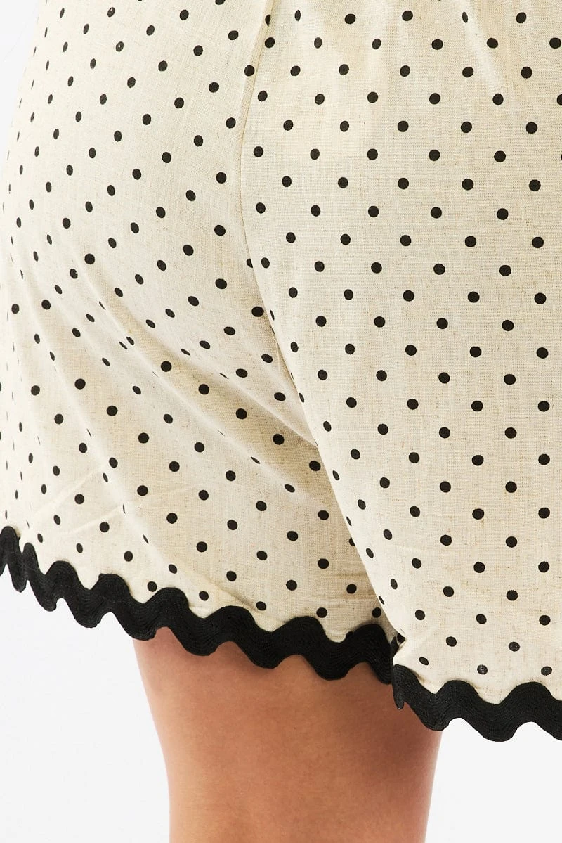 Be the first to review “Beige Polka Dot Elastic Waist Linen Blend Ric Rac Trim Shorts” Cancel reply
