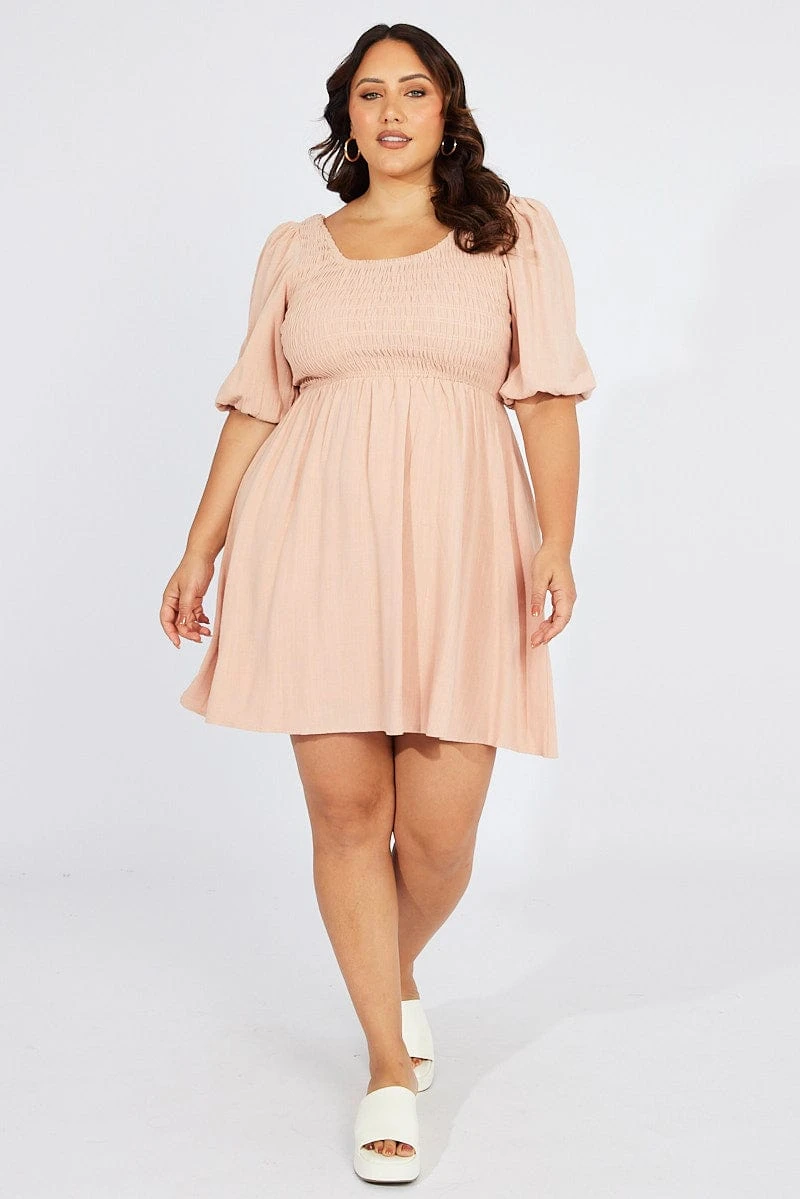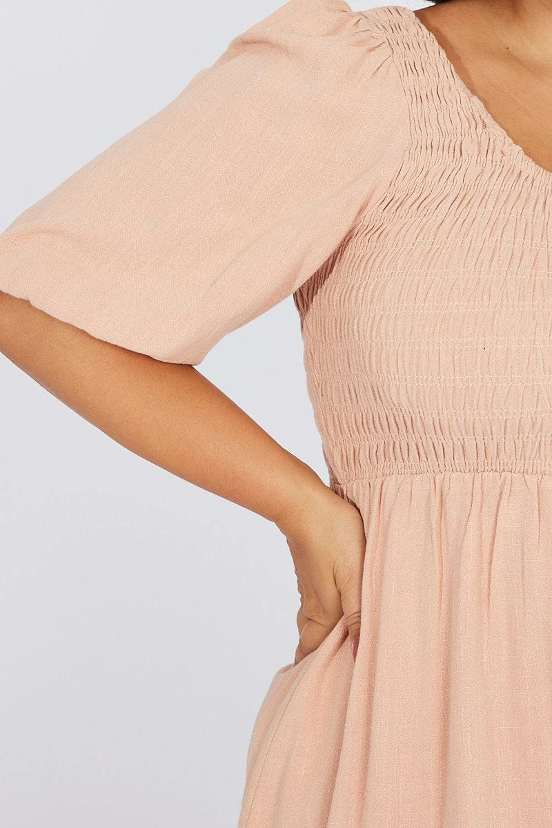 Be the first to review “Beige Shirred Bodice Scoop Neck Minidress Linen Blend” Cancel reply