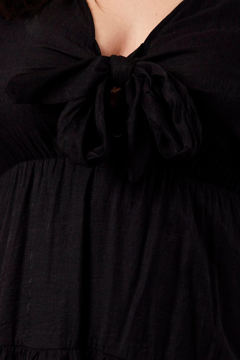 Be the first to review “Black 3/4 Sleeve Tie Frill Mini Dress” Cancel reply