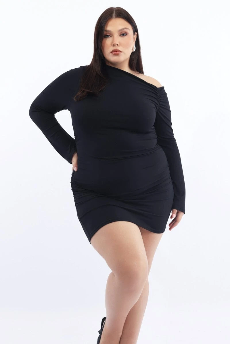 Be the first to review “Black Asymmetric Long Sleeve Ruched Supersoft Mini Dress” Cancel reply