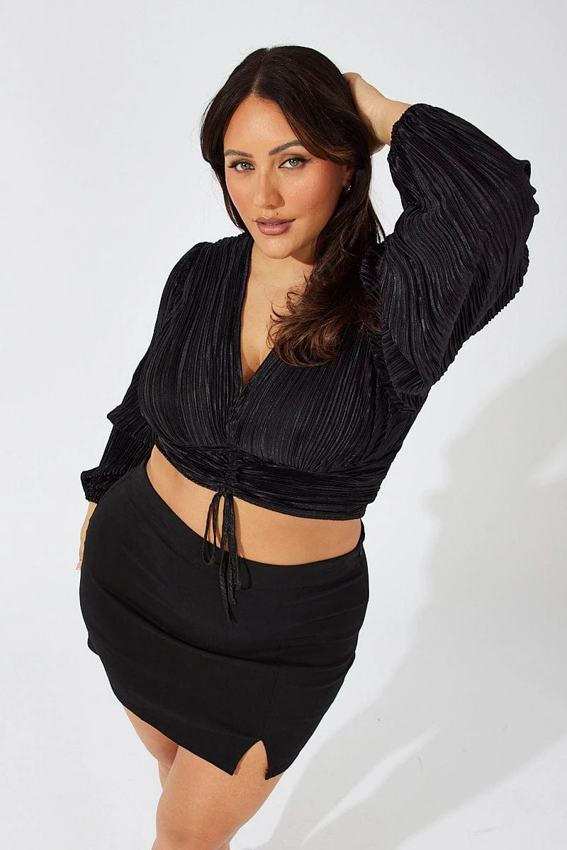 Be the first to review “Black Crop Top Long Sleeve Ruched Plisse” Cancel reply