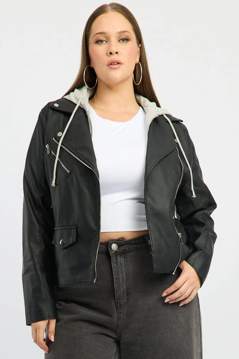 Be the first to review “Black Faux Leather Jacket With Detachable Hood” Cancel reply