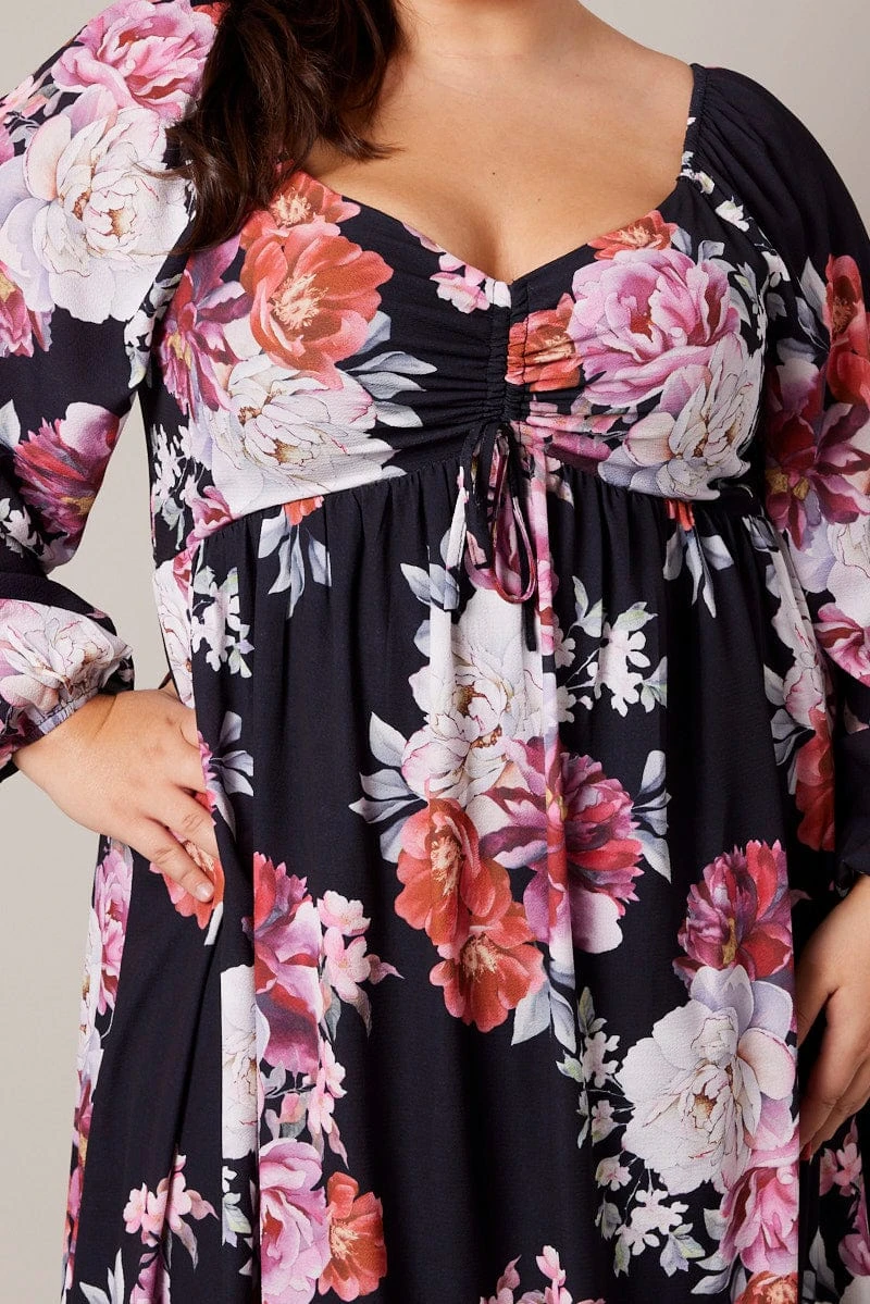 Be the first to review “Black Floral Midi Dress Long Sleeve Ruched Bust” Cancel reply