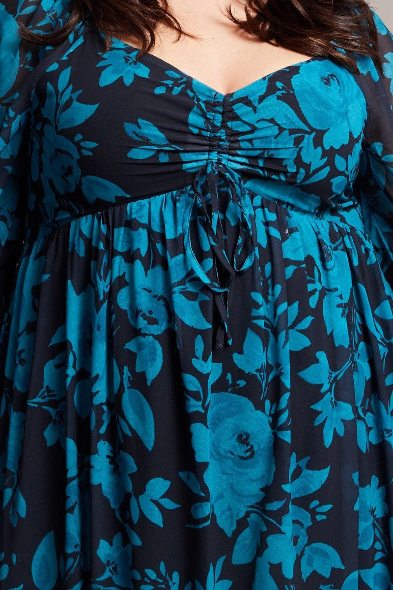 Be the first to review “Black Floral Midi Dress Long Sleeve Ruched Front” Cancel reply