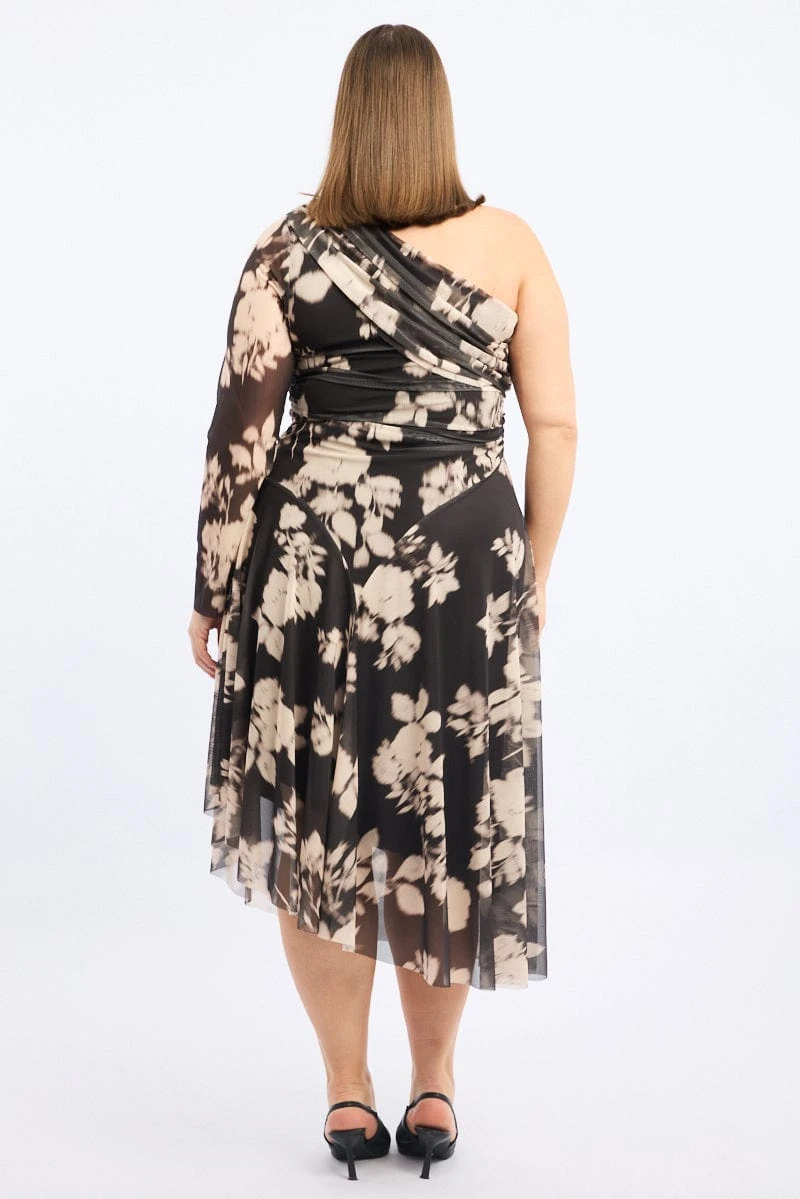 Be the first to review “Black Floral Midi Dress One Shoulder Mesh” Cancel reply