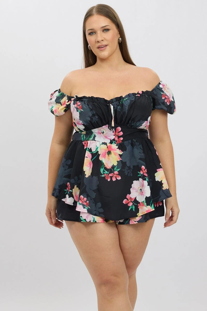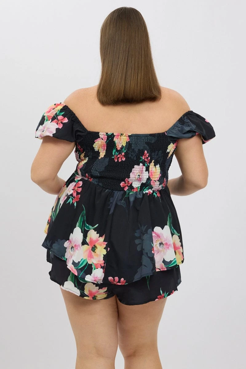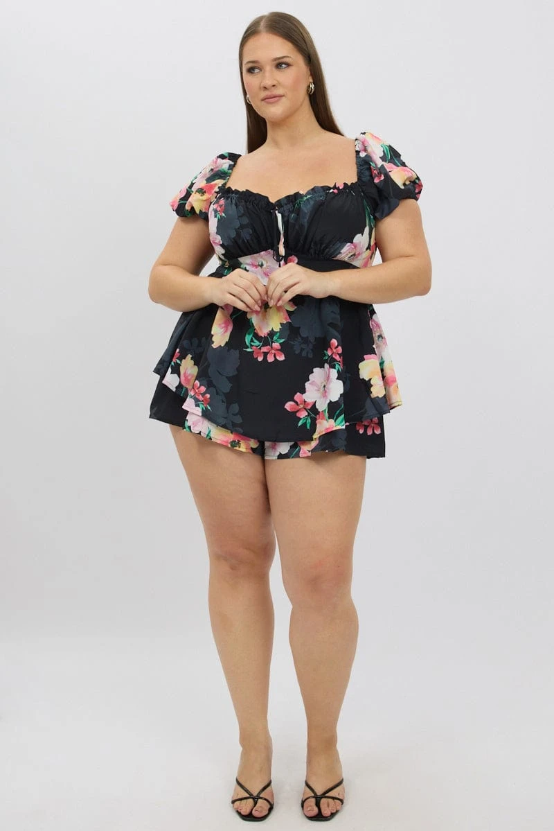 Be the first to review “Black Floral Ruched Playsuit Short Sleeve” Cancel reply