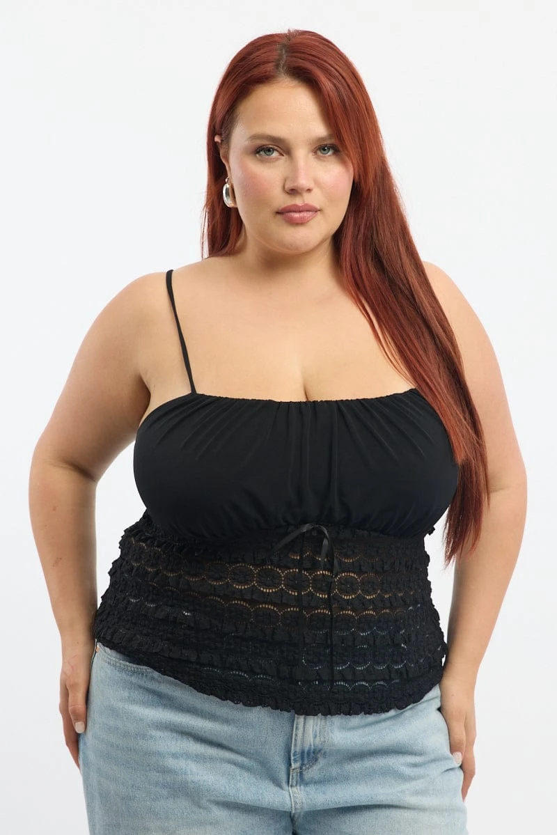 Be the first to review “Black Lace Top Sleeveless Ruched Bust” Cancel reply