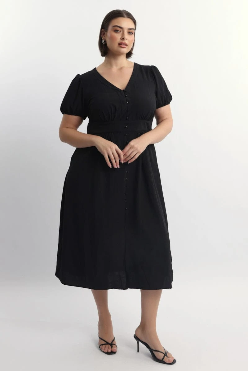 Be the first to review “Black Midi Dress Short Sleeve V-Neck Textured” Cancel reply