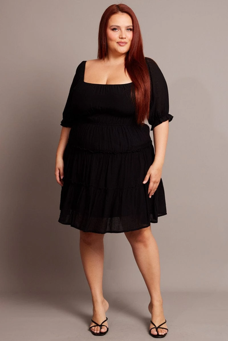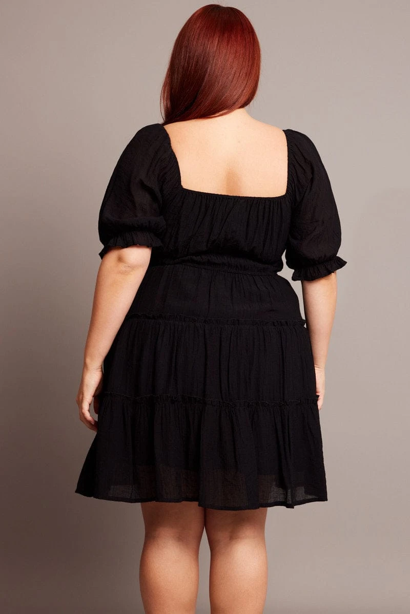 Be the first to review “Black Mini Dress With Elastic Waist And Frill Skirt” Cancel reply