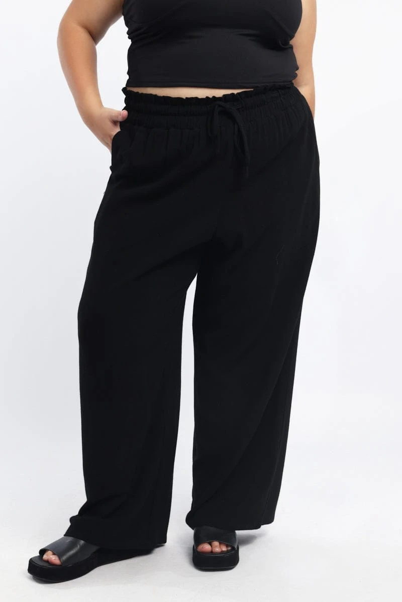 Be the first to review “Black Paperbag Elastic Waist Linen Blend Wide Leg Pants” Cancel reply
