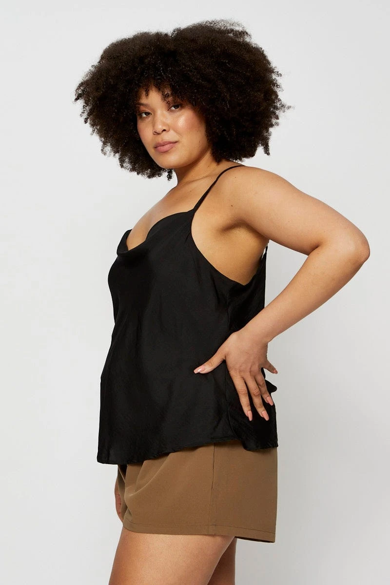 Feature: Cowl Neckline, Satin Look, Adjustable Straps, Bodysuit