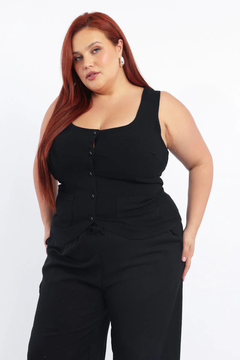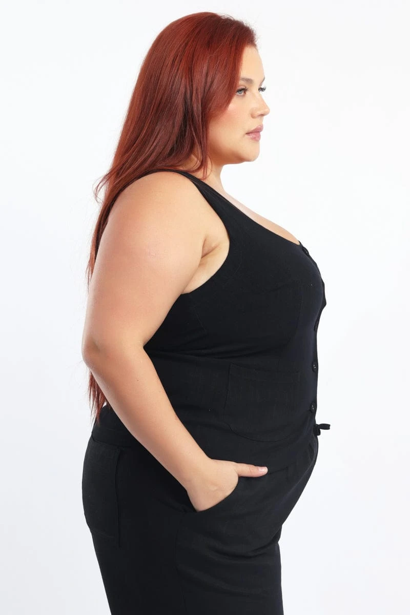 Be the first to review “Black Scoop Neck Linen Blend Tie Back Vest” Cancel reply