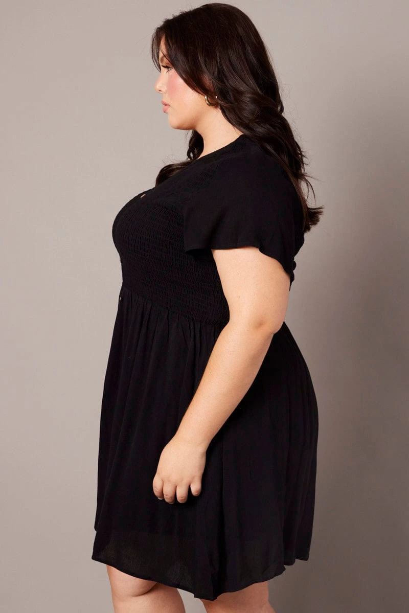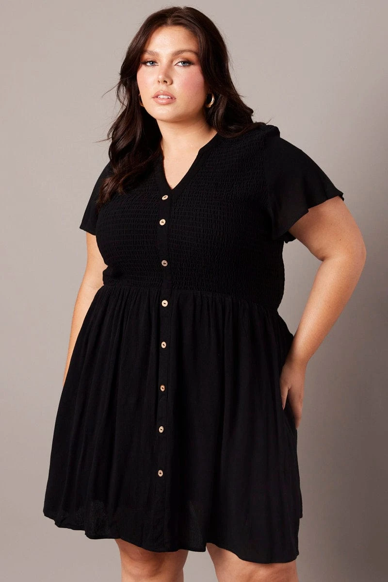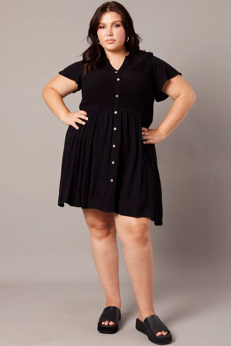 Be the first to review “Black Shirred Mini Shirtdress” Cancel reply