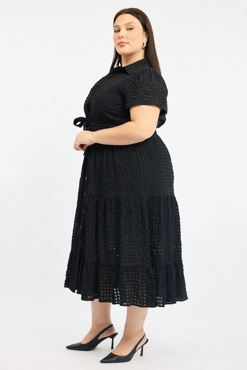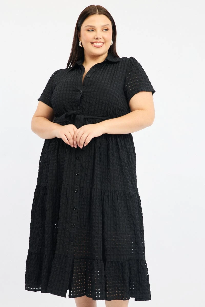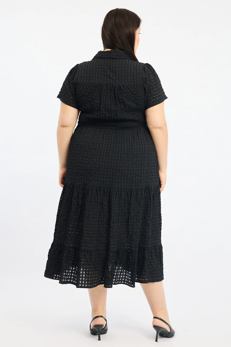 Be the first to review “Black Shirt Dress Short Sleeve Tiered Self Check” Cancel reply