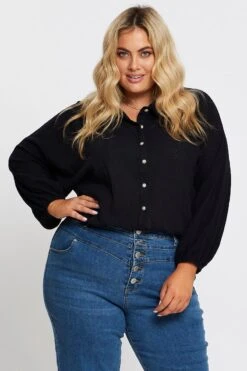 Features: Volume Sleeves, Collared Neck, Button Front, Elasticised Waistband