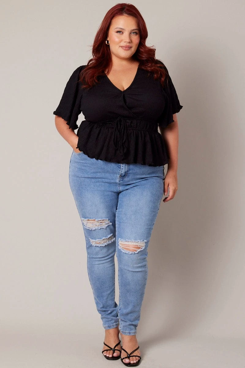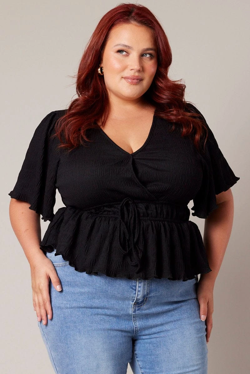 Be the first to review “Black Wrap Top Short Sleeve Textured” Cancel reply