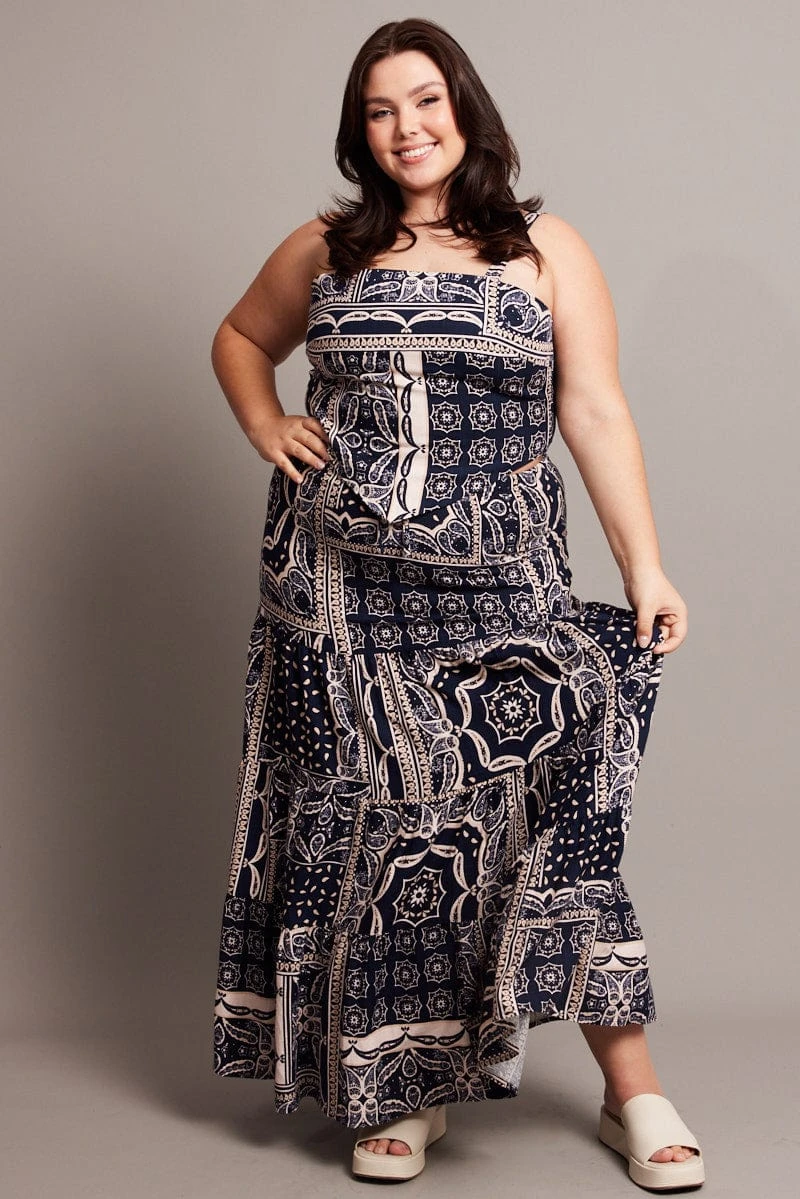 Be the first to review “Blue Abstract Tiered Maxi Skirt” Cancel reply