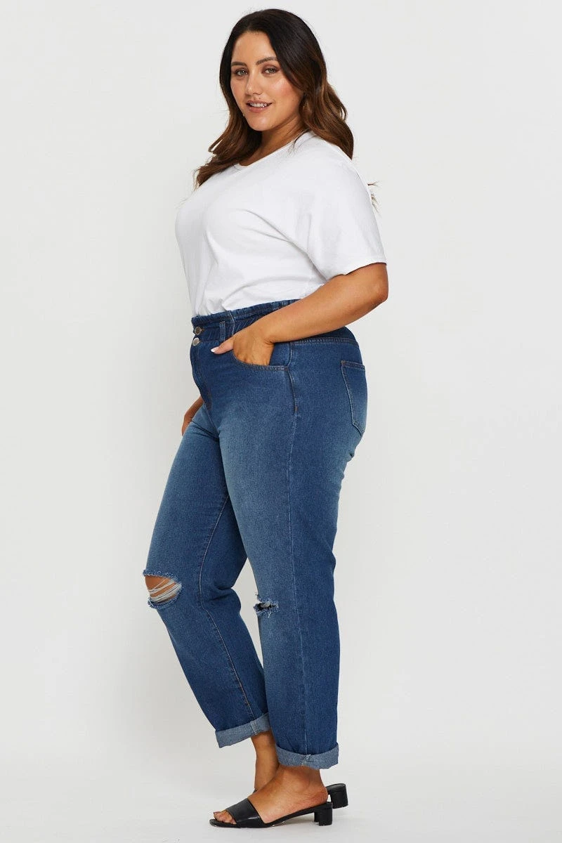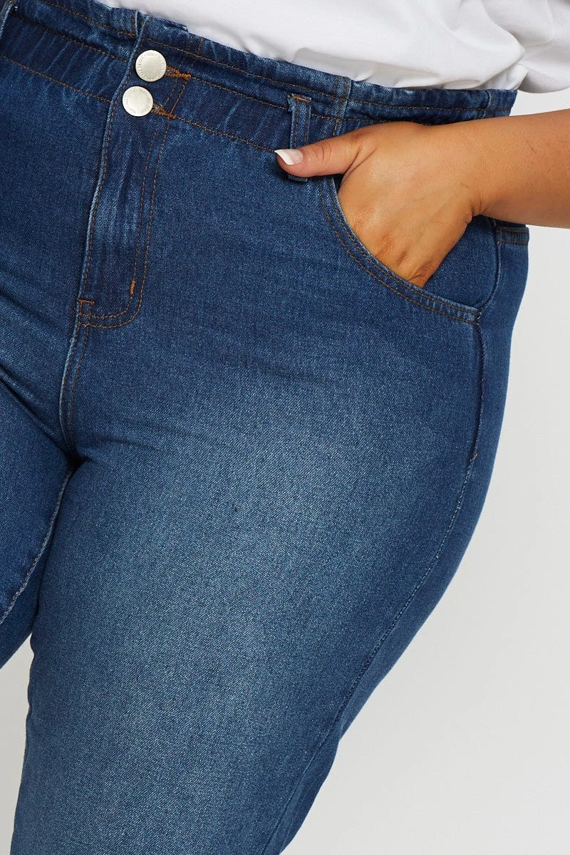 Feature: Elastic waist , Distressed detailing, Front and back pockets , Paper Bag design