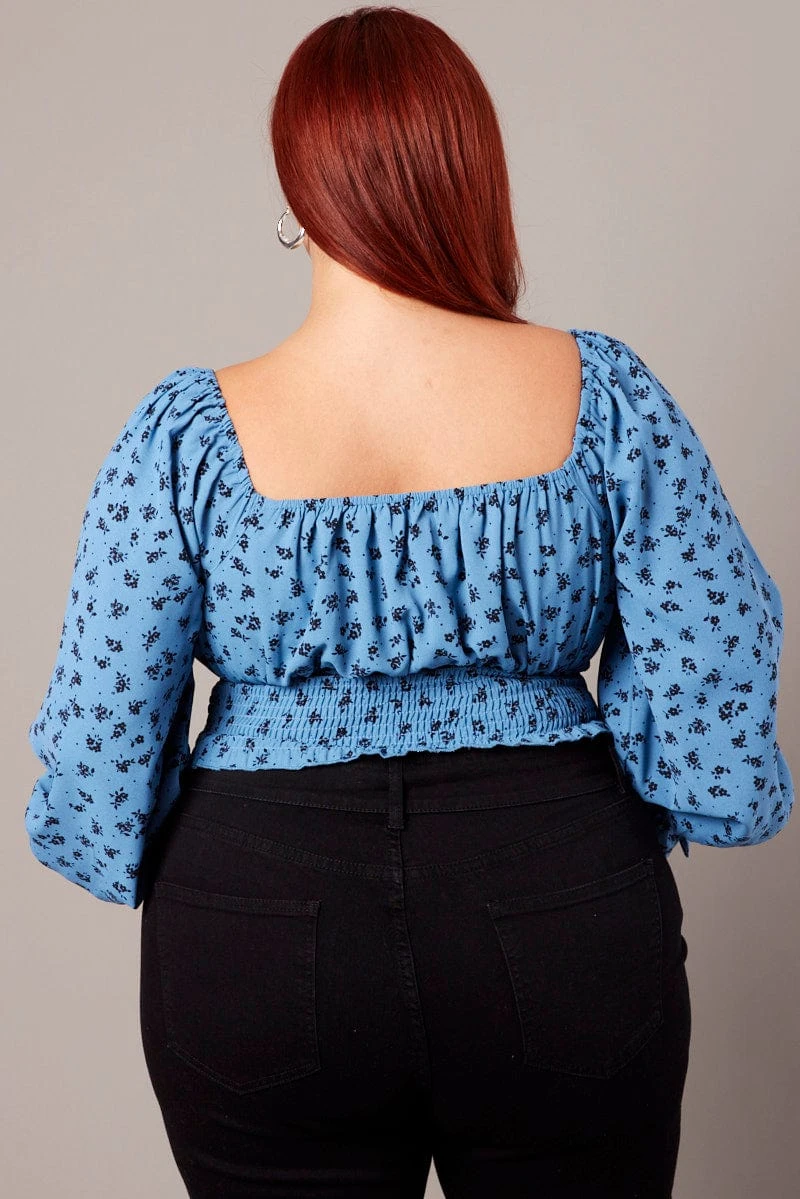Be the first to review “Blue Ditsy Crop Top Long Sleeve Shirred Waist” Cancel reply