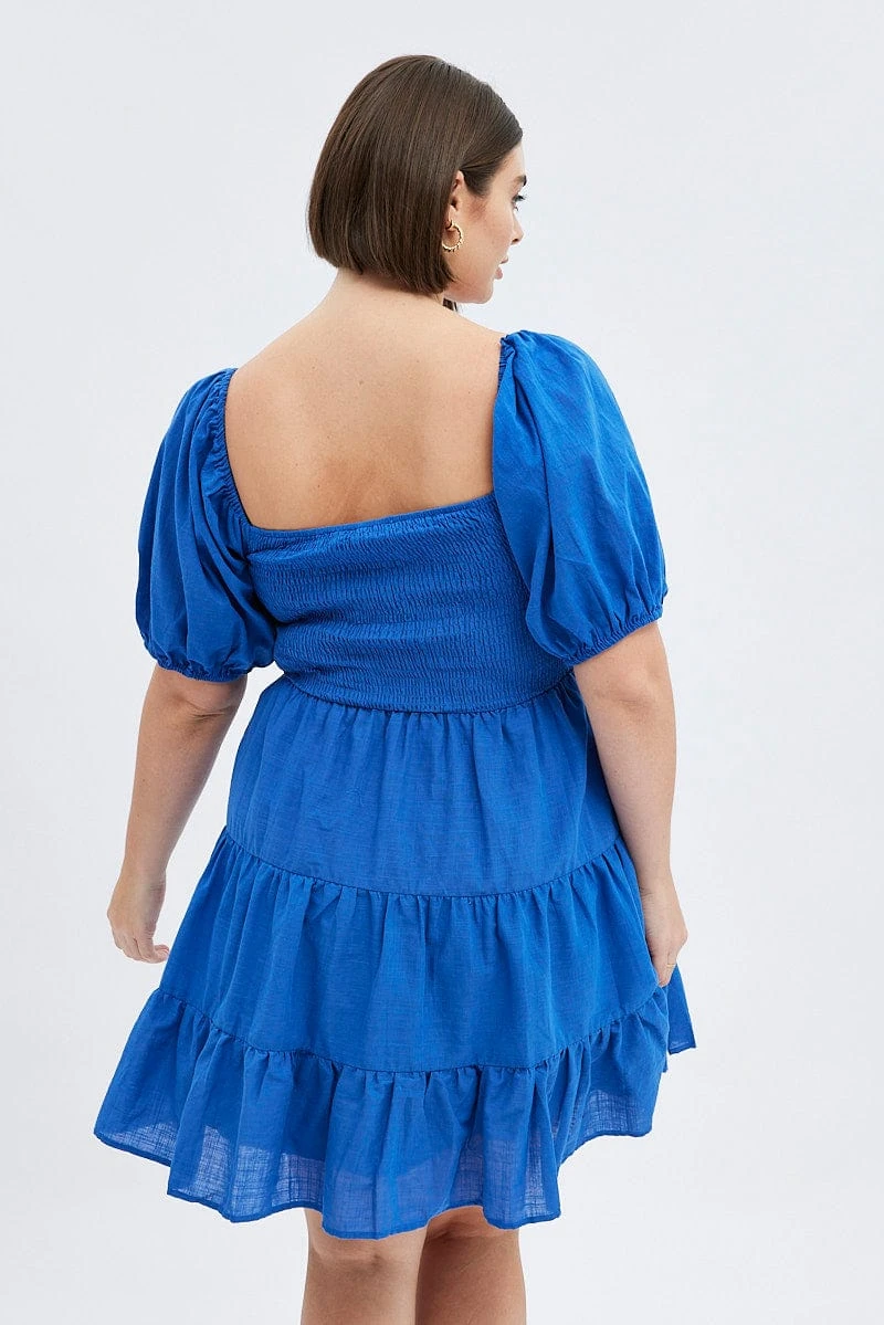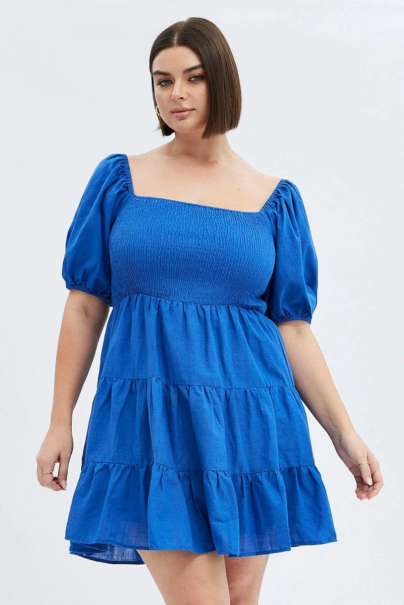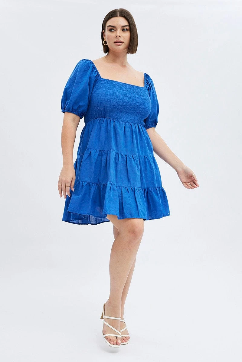 Be the first to review “Blue Fit And Flare Dress Short Sleeve Shirred” Cancel reply