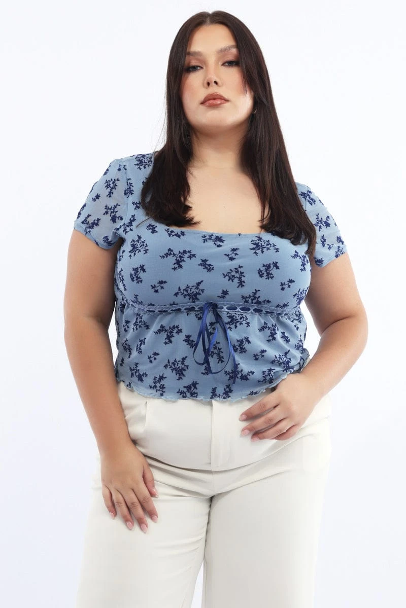Be the first to review “Blue Floral Mesh Top Burn Out Short Sleeve” Cancel reply