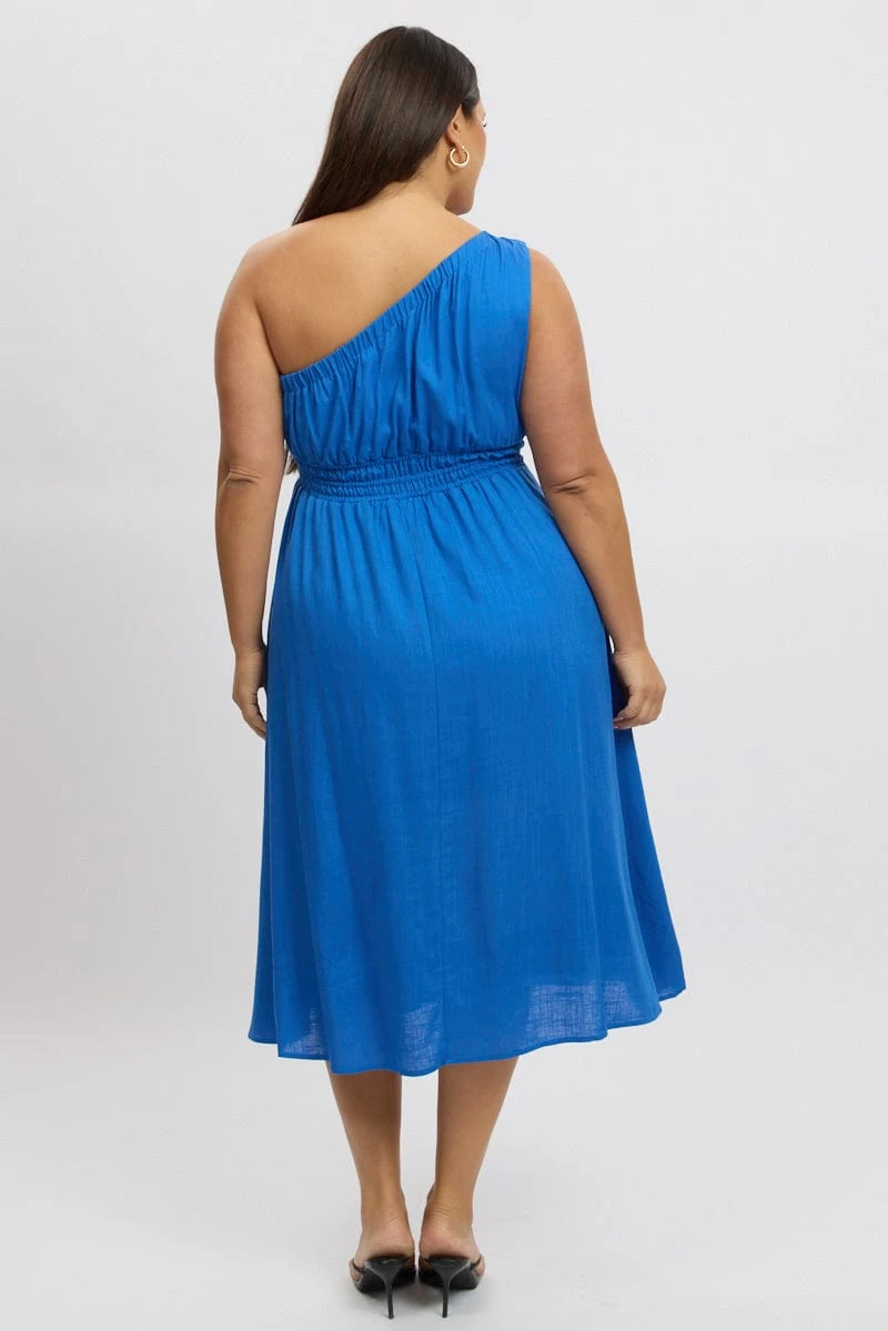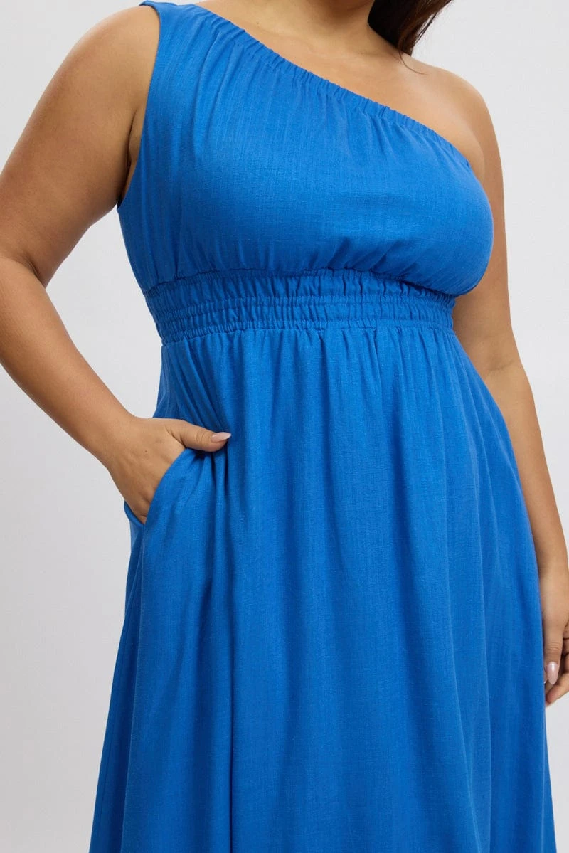 Be the first to review “Blue Midi Dress One Shoulder Linen Blend” Cancel reply
