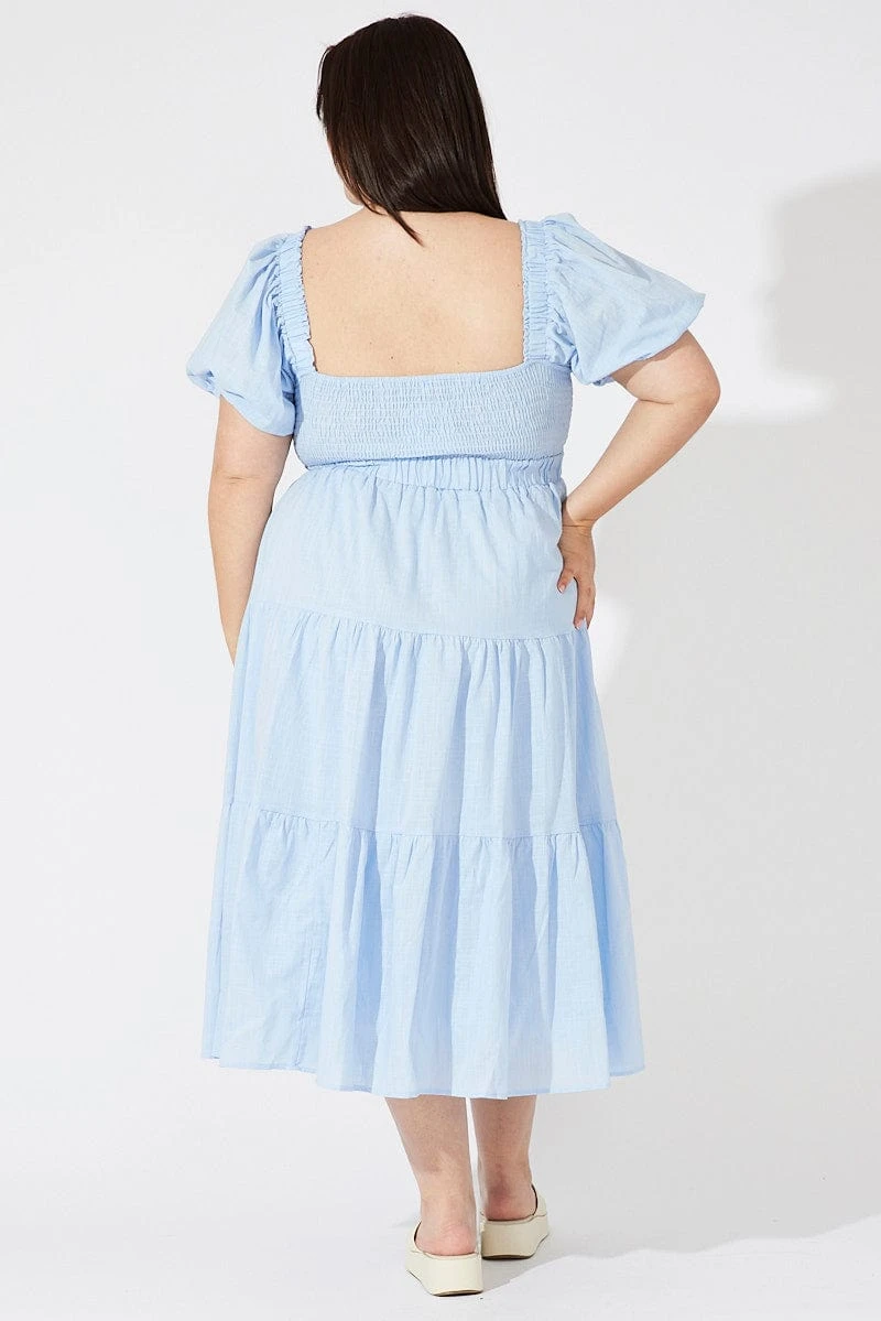 Be the first to review “Blue Midi Dress Short Sleeve Tiered Cotton” Cancel reply