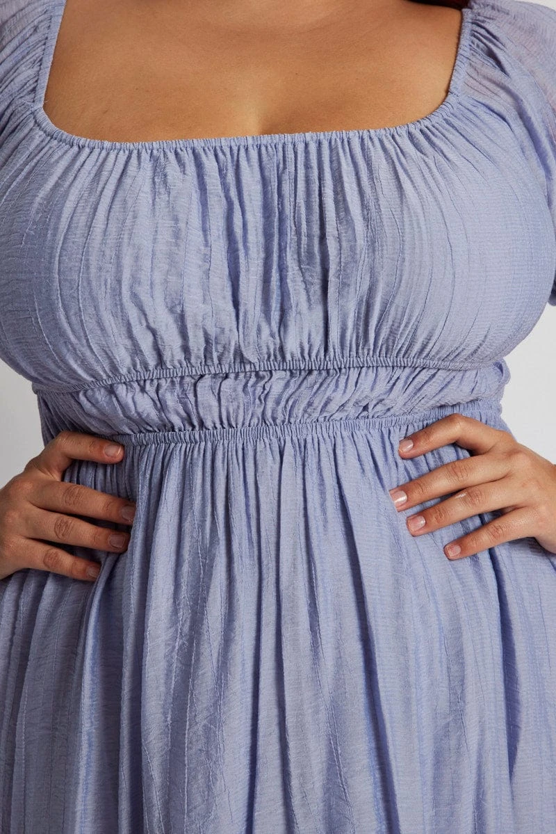 Be the first to review “Blue Mini Dress Gather Waist Frill Hem” Cancel reply