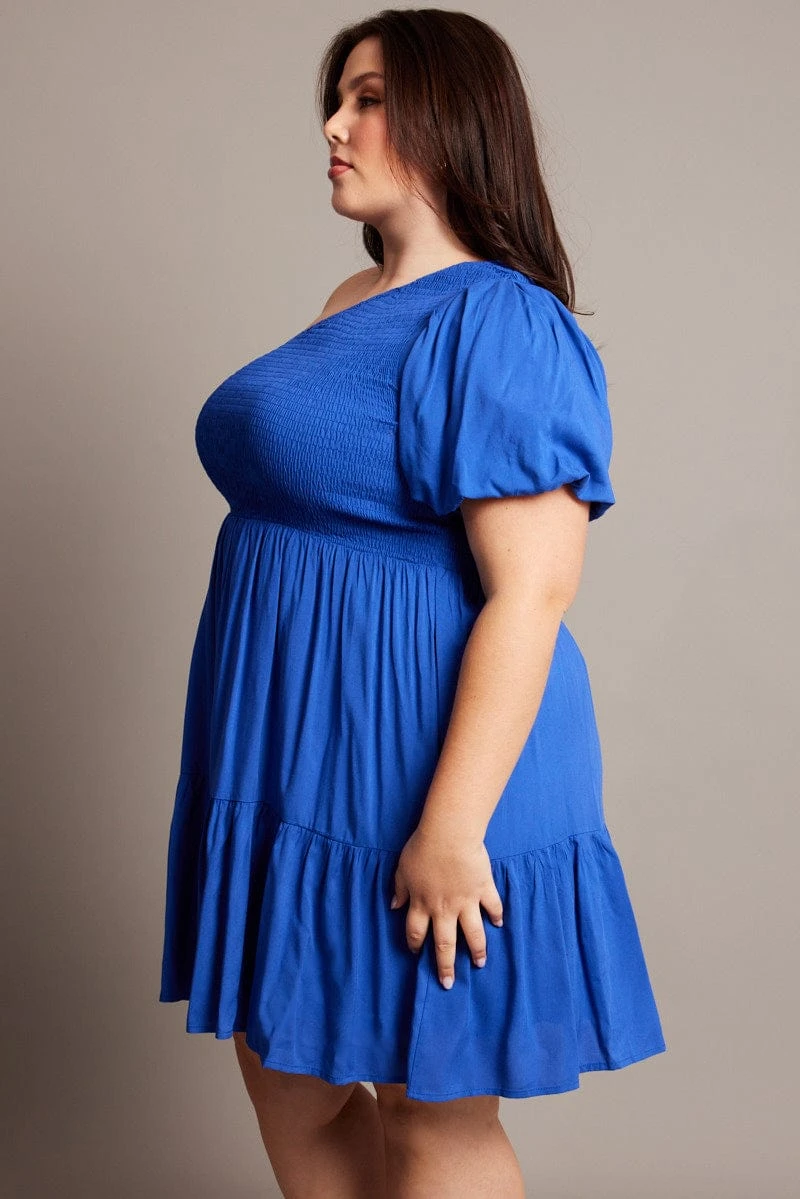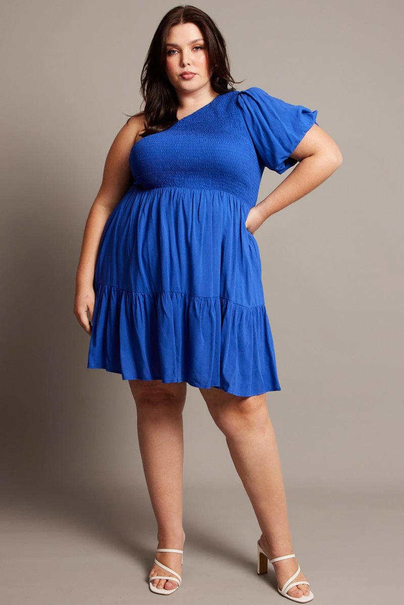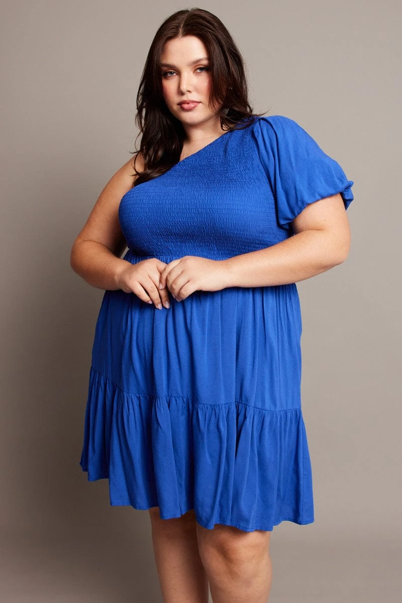 Be the first to review “Blue One Shoulder Dress Shirred Bodice Pockets” Cancel reply
