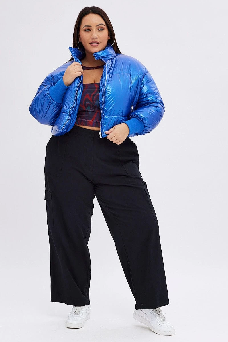 Be the first to review “Blue Puffer Jacket Shiny Wet Look Lined Cropped” Cancel reply