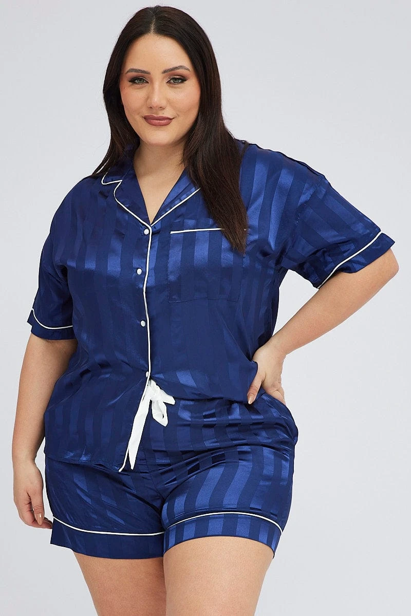 Be the first to review “Blue Pyjama Set Stripe Satin Jacquard Piping Pj” Cancel reply