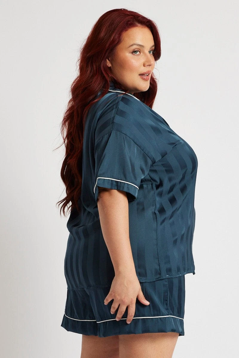 Be the first to review “Blue Satin Pyjama Jacquard Stripe Piping Pj Set” Cancel reply
