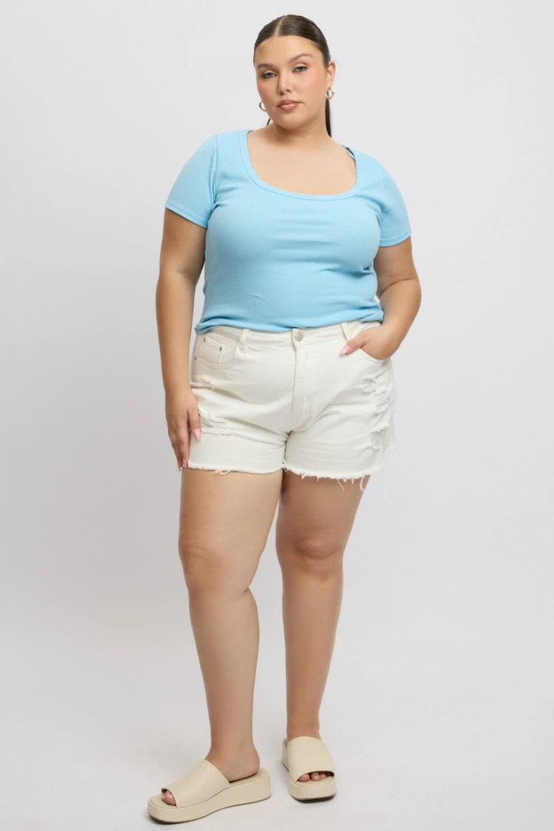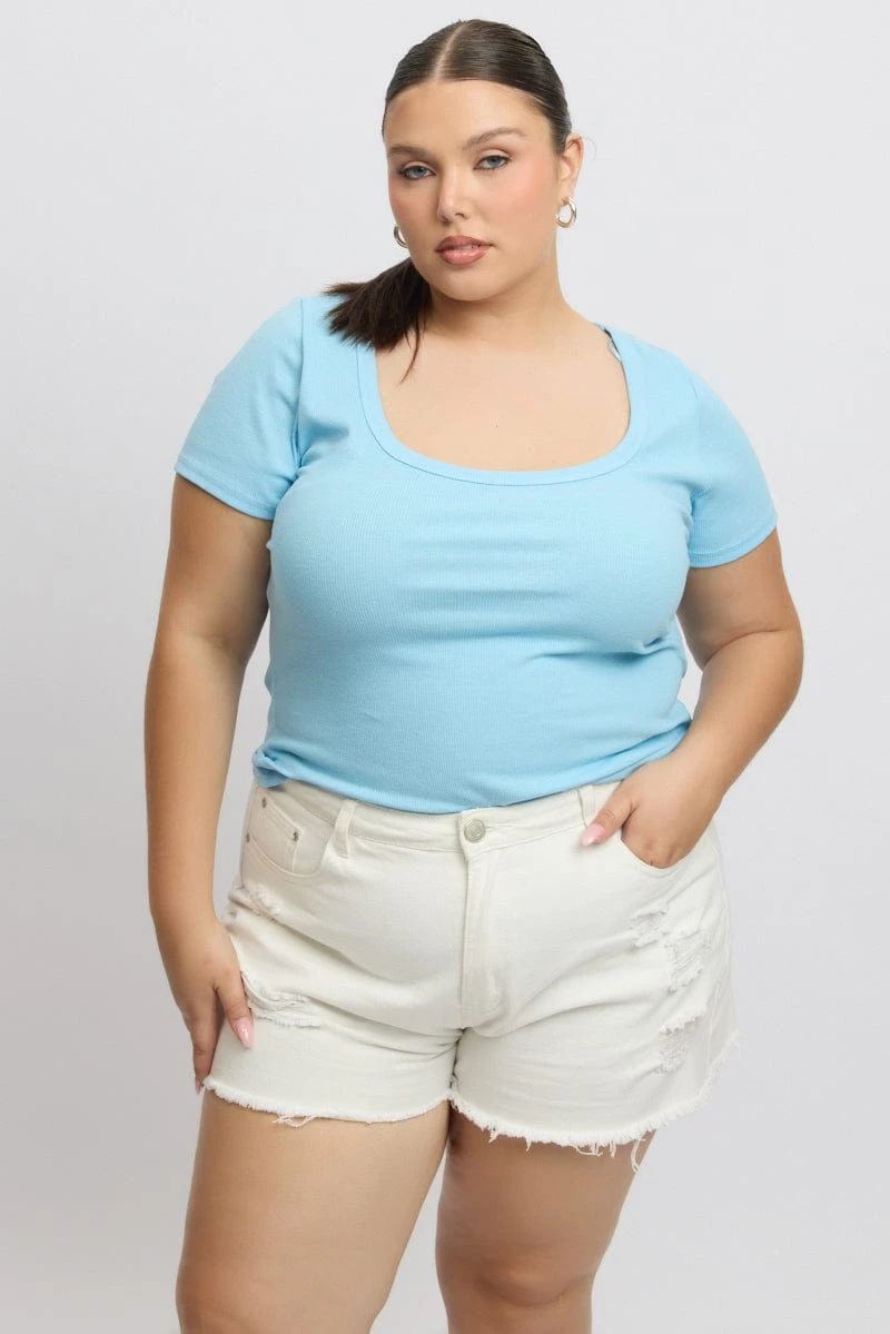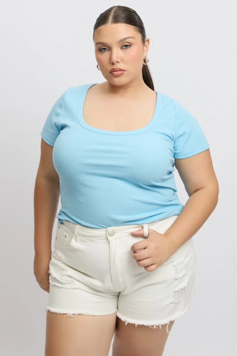 Be the first to review “Blue Scoop Neck Short Sleeve Rib T -Shirt” Cancel reply