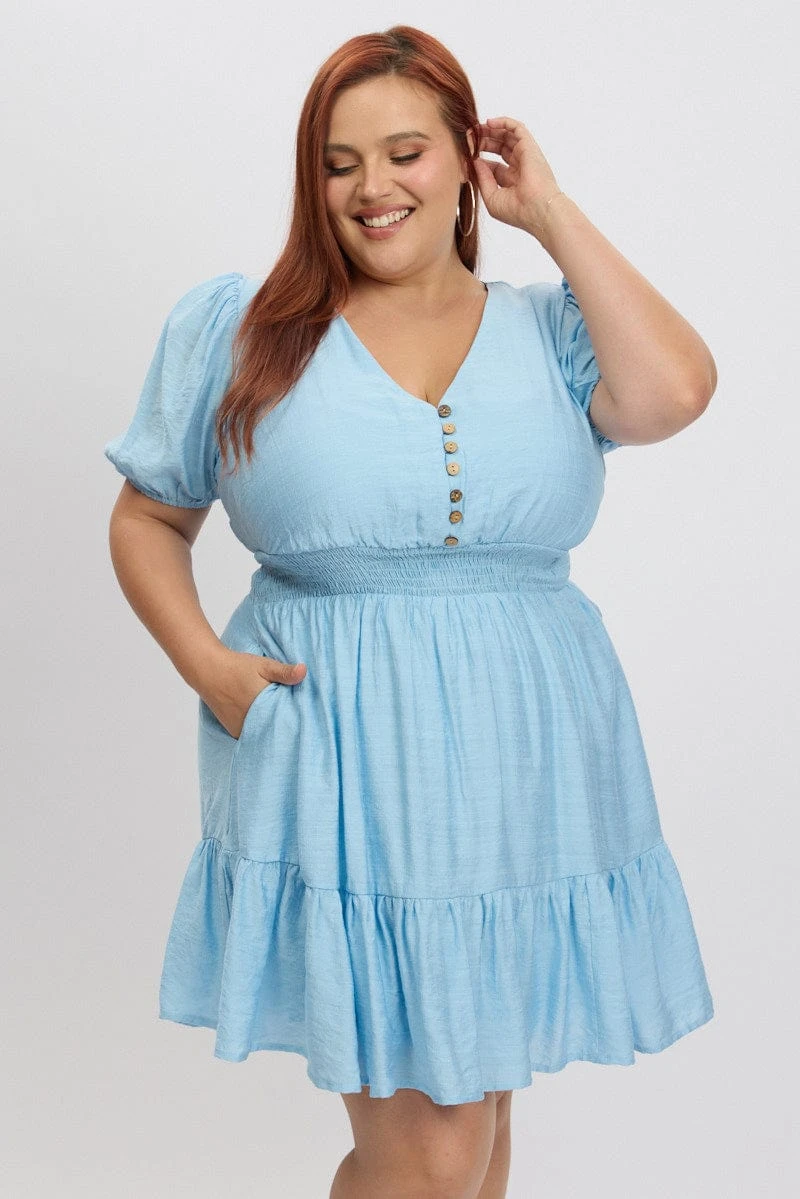 Be the first to review “Blue Shirred Waist Button Mini Dress” Cancel reply