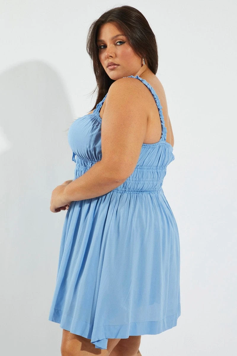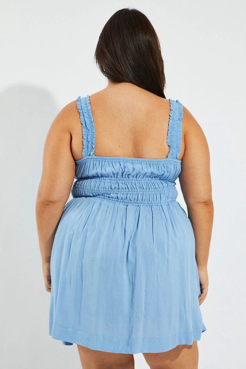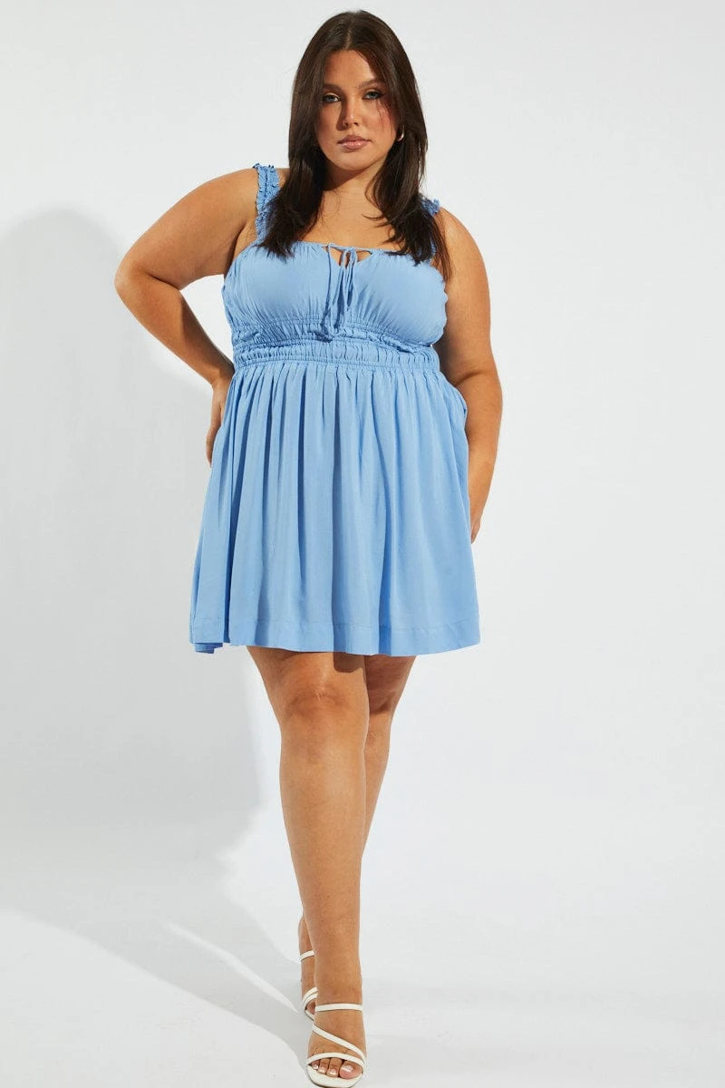 Be the first to review “Blue Tie Front Frill Strap Mini Dress” Cancel reply