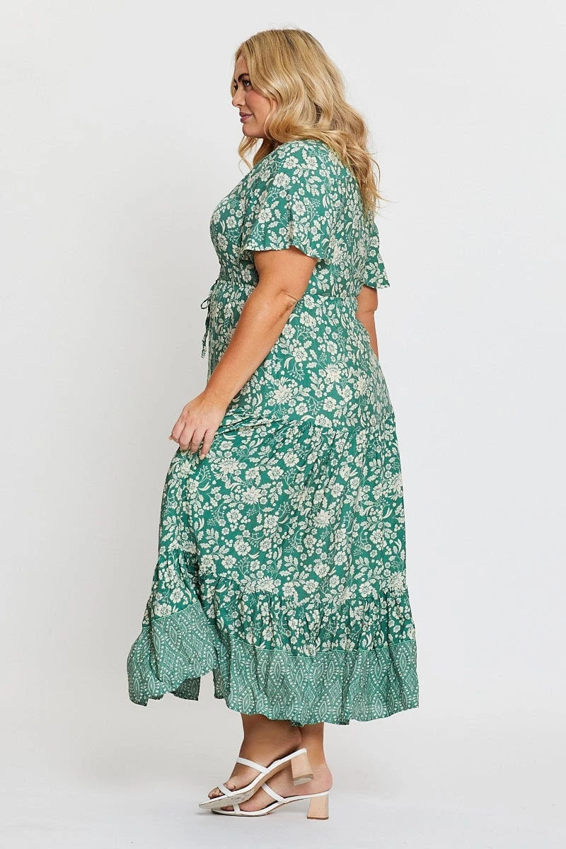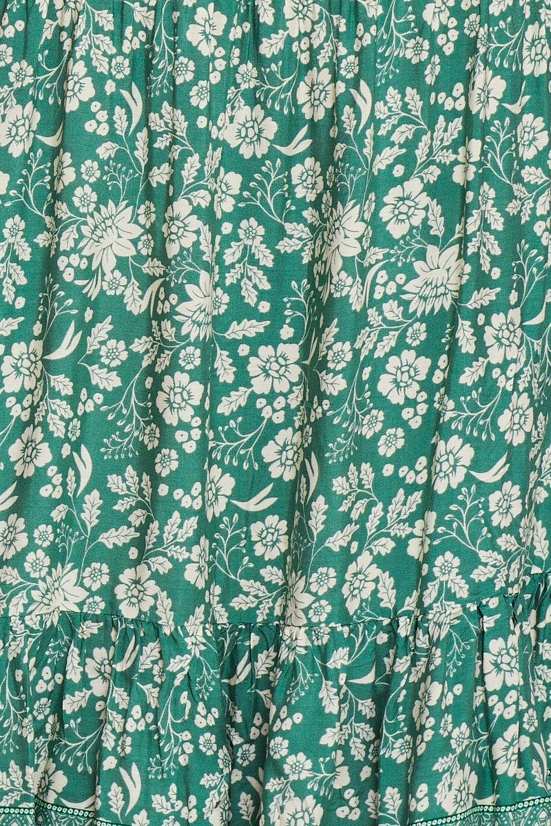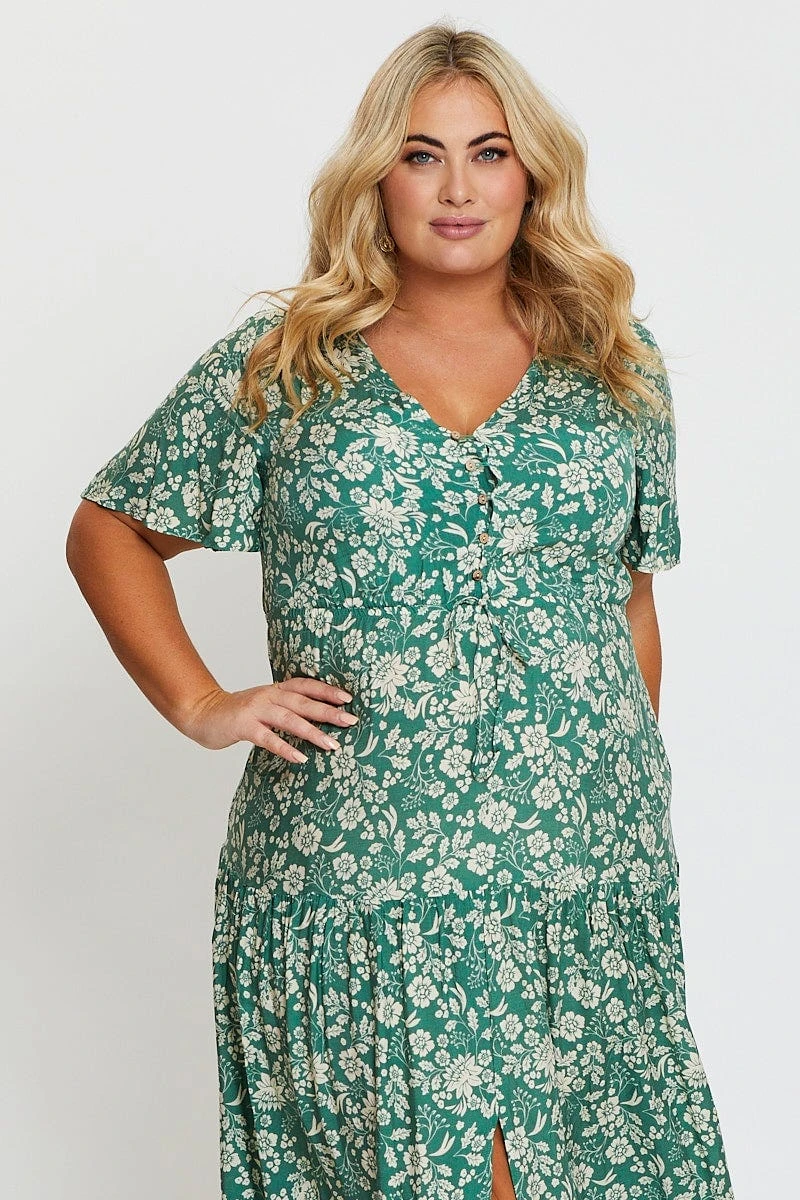 Feature: Floral Print, Button Front, Tiered Design, Tie Detail