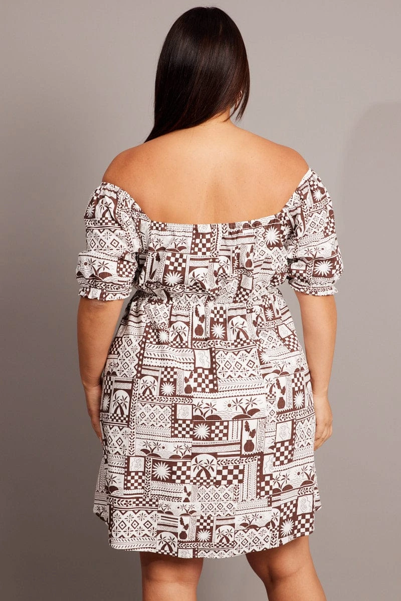 Be the first to review “Brown Abstract Mini Dress Puff Sleeve Linen Blend” Cancel reply