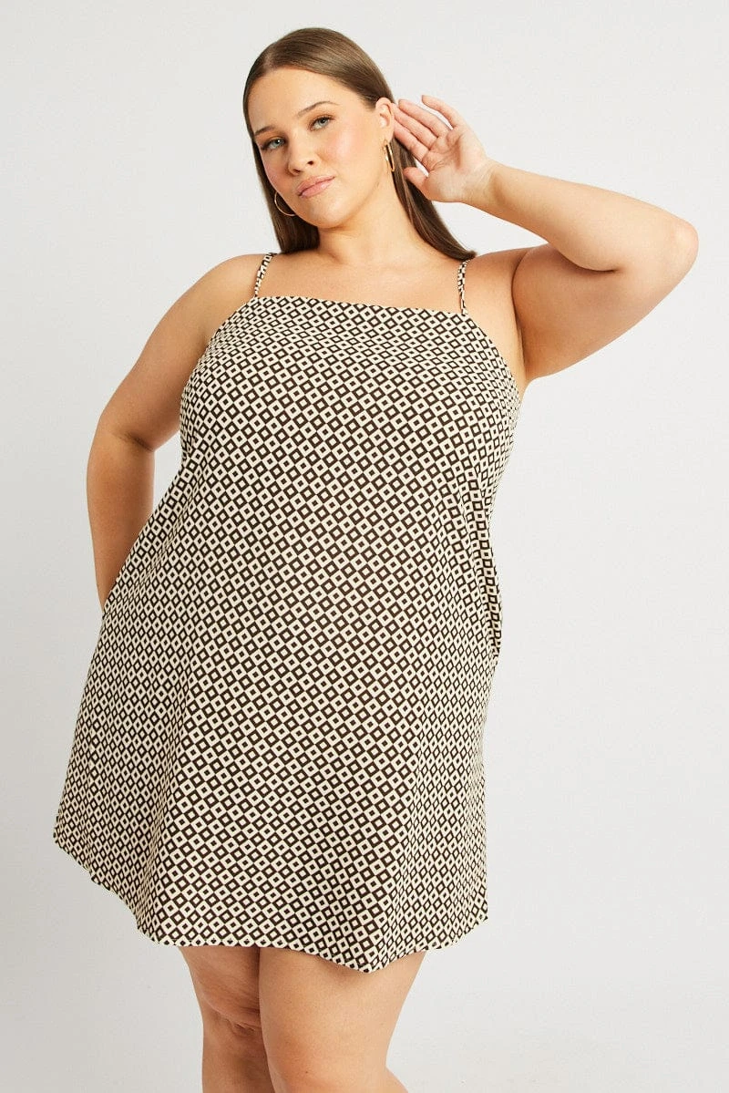 Be the first to review “Brown Geo Shoestring Strap Minidress” Cancel reply