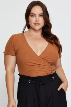 Feature: Ribbed Fabric, Scalloped Hem, Cropped Length, Ruched Centre