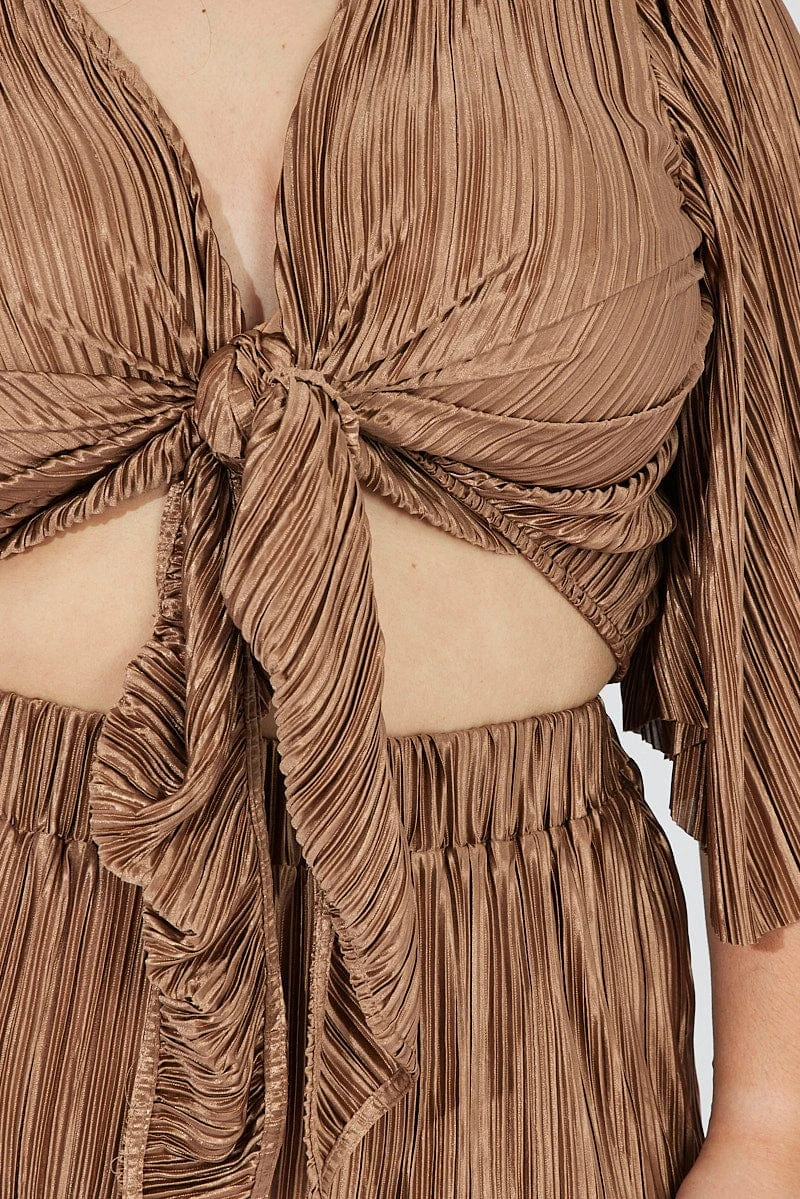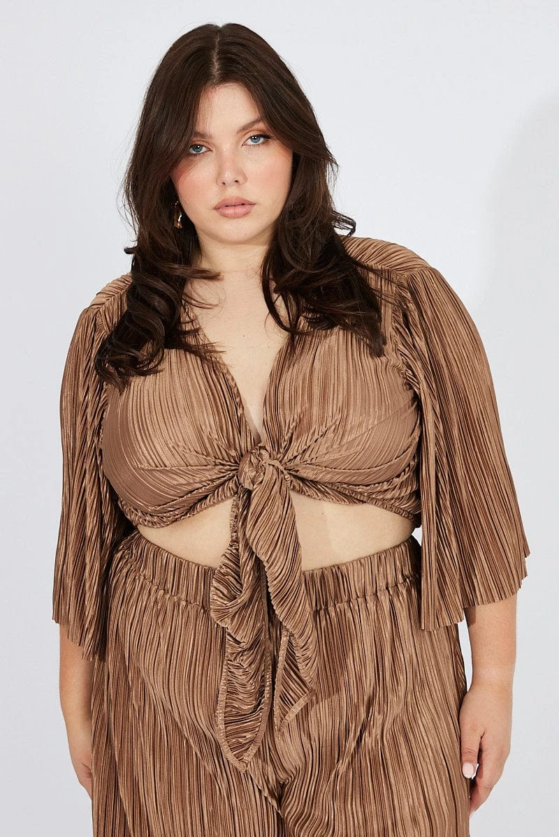 Be the first to review “Brown Plisse Satin Flare Sleeve Tie Bolero Top” Cancel reply