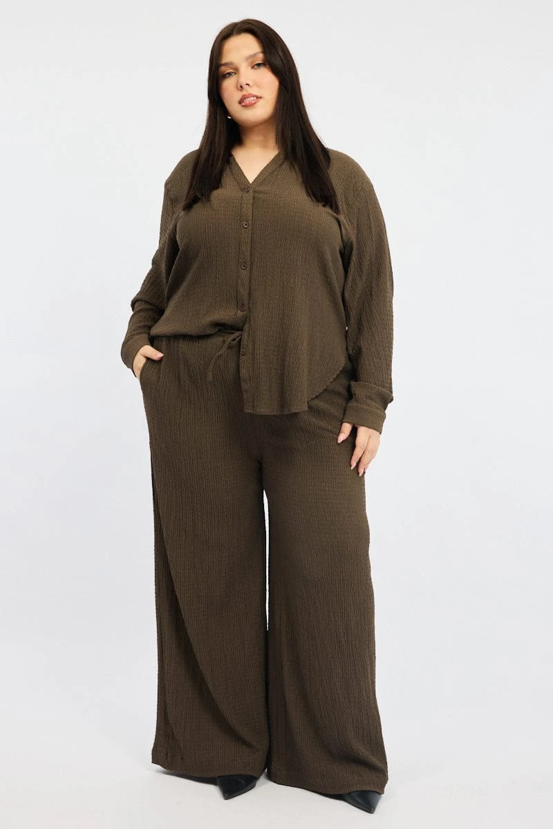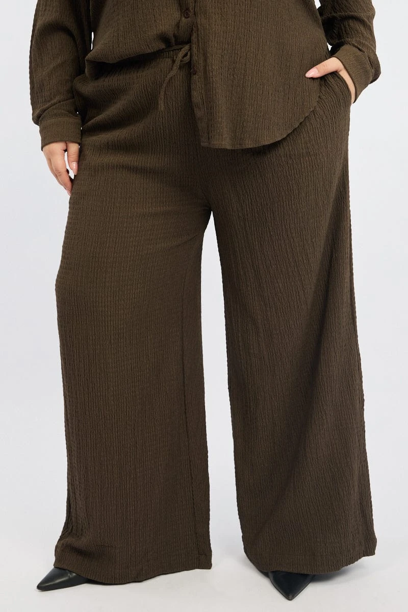 Be the first to review “Brown Textured Elastic Waist Wide Leg Pants” Cancel reply