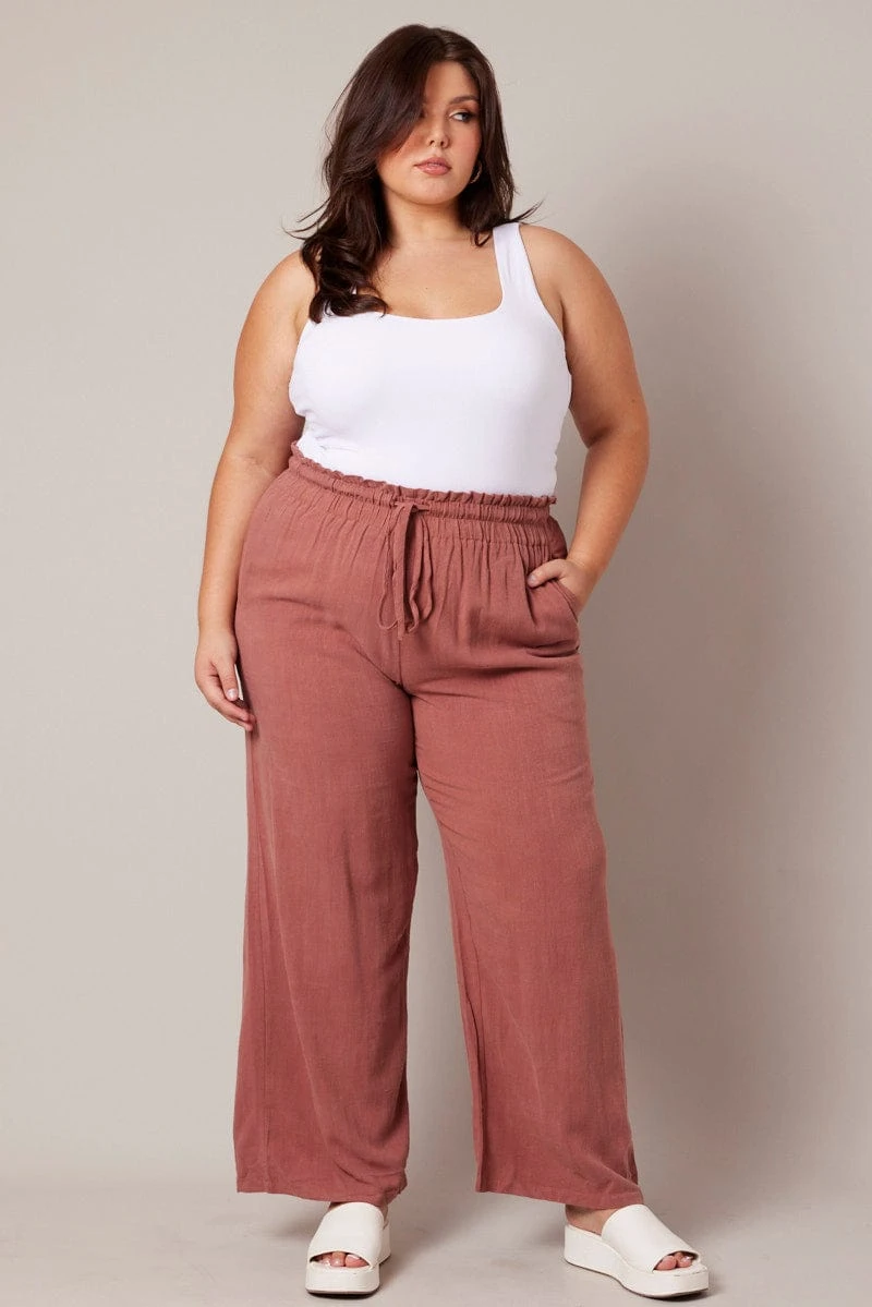Be the first to review “Brown Wideleg Pants Paperbag Elastic Waist Linen Blend” Cancel reply