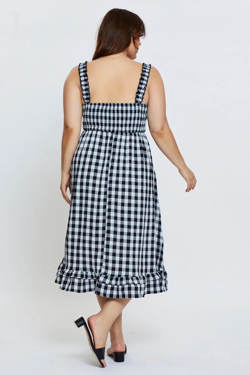 Feature: Shirred Bodice, Frill Hem, Gingham Print, Midi Length