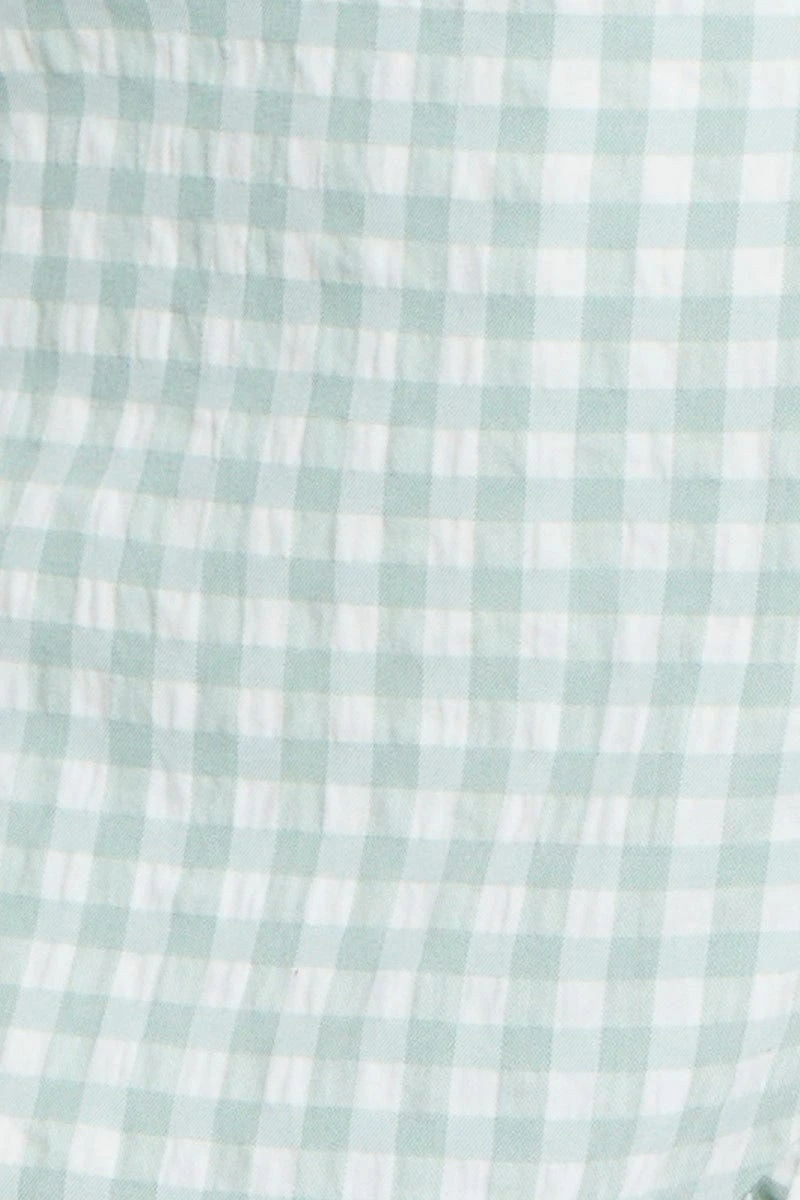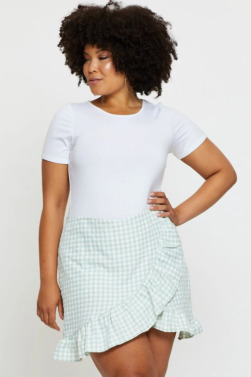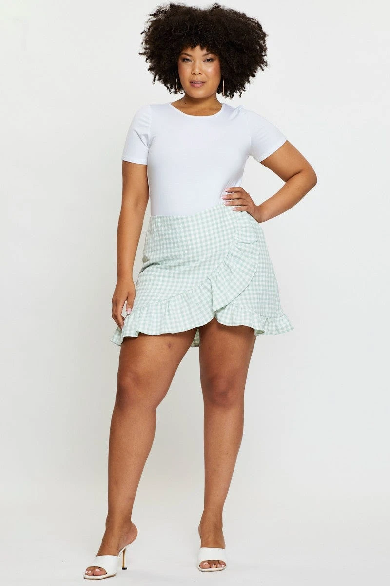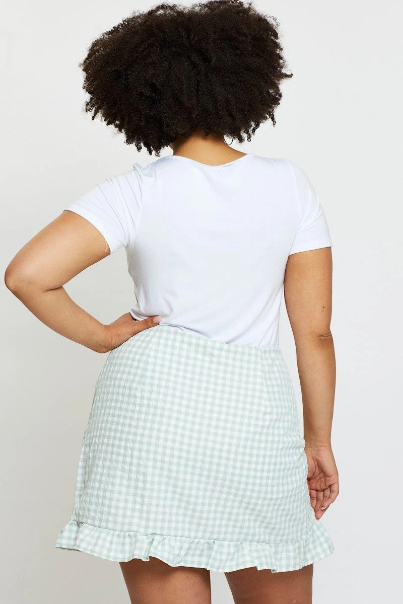 Feature: Gingham Print, Ruffle Detail, Mini Length, Side Zipper