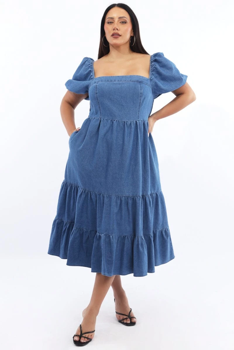 Be the first to review “Denim Midi Dress Short Sleeve Tiered” Cancel reply